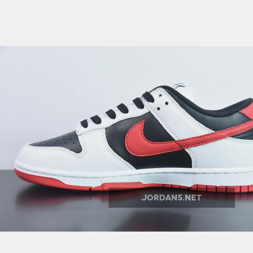 This Nike Dunk Low “Reverse Red Panda”, features a tri-tone color palette mixing in black, white and red elements throughout its uppers. Largely taking inspiration from the “Reverse Panda”, this new colorway of the Dunk Low comes dressed in a Black leather base contrasted by the White hits on the leather overlays and tongue tags.