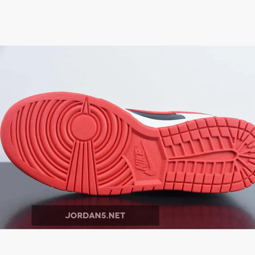The “Chicago” comes in the form of a bright varsity red, highlighting the lateral Swoosh logos, heel tabs, outersole underfoot and the branding on the insole. These pops of red accentuates the otherwise rather monochromatic black and white model and definitely breathes revitalizes the colorway slightly more.