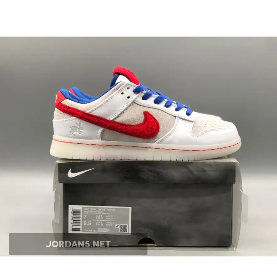 This offering of the Nike Dunk Low is a direct nod to the Air Force 1 featuring a Grey suede base with White leather overlays and Crimson chenille Swoosh on the lateral and Royal Swoosh on the medial. Highlighting the release are Chinese characters on the tongues, followed by graphics of rabbits on the lateral ankles and insoles. For the finishing touches, the sneaker includes translucent outsoles with the years “2011” and “2023” displayed.