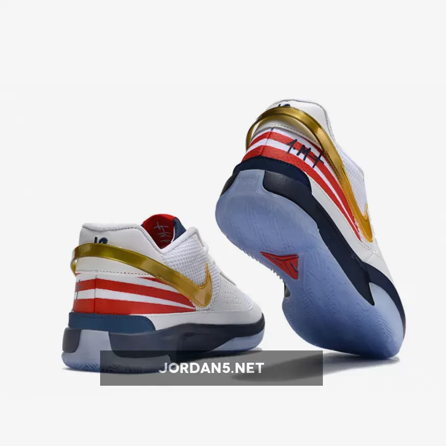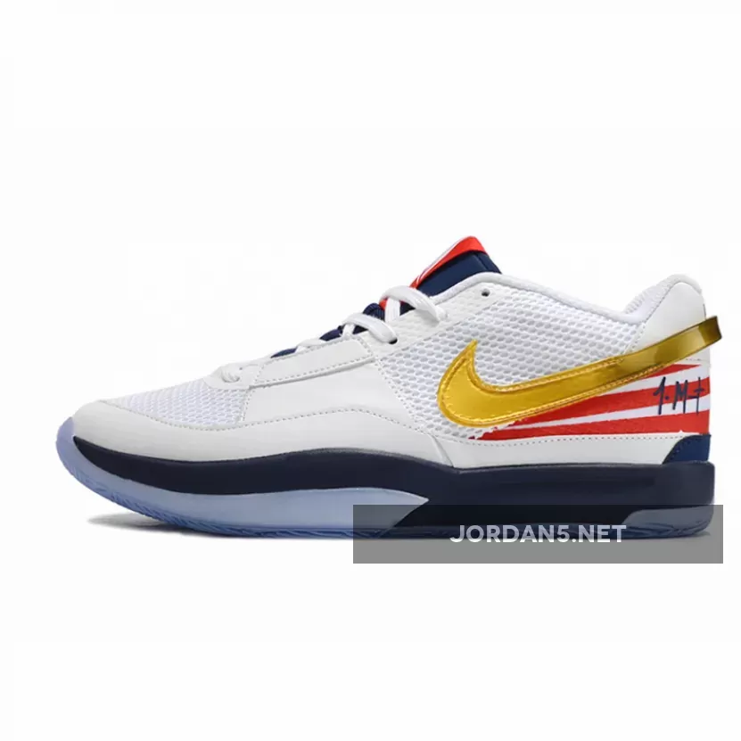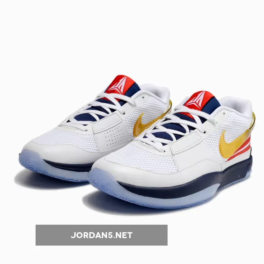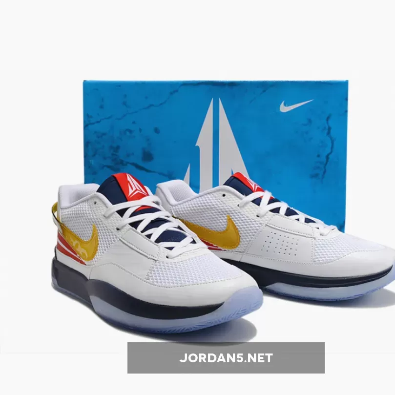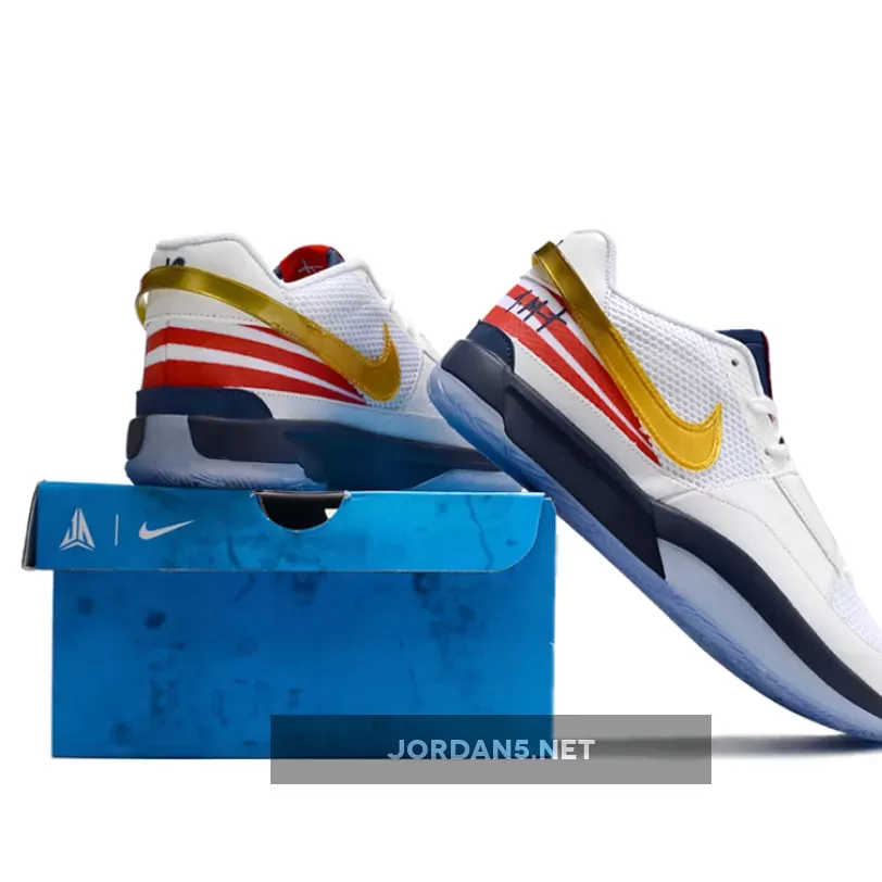 Get ready for any adventure with Nike JA 1 “USA” White Navy Gold Red from JORDAN5.NET.