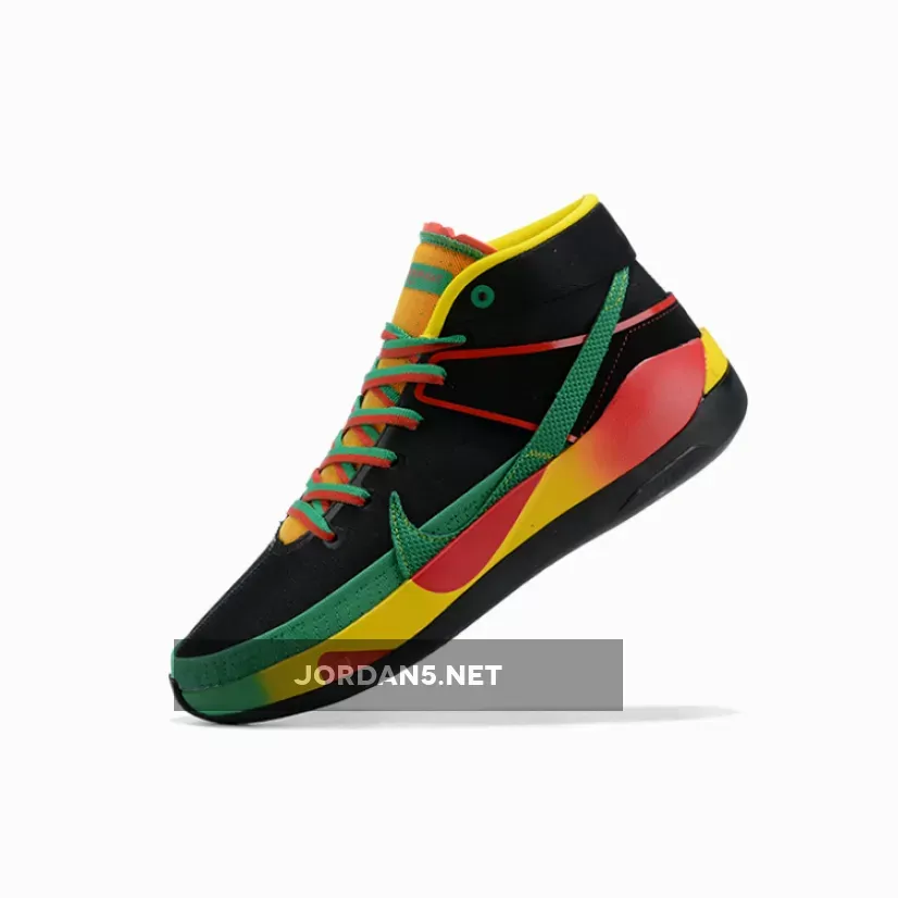 “I’m loving my new KD 13 ‘Rasta’! 🏀 The black ripstop upper is so durable and the red/green/yellow accents are a great pop of color. The gradient midsole is a nice touch too! 👍 My only gripe is that the laces could be a bit longer, but overall I’m super happy with this purchase. 😊”