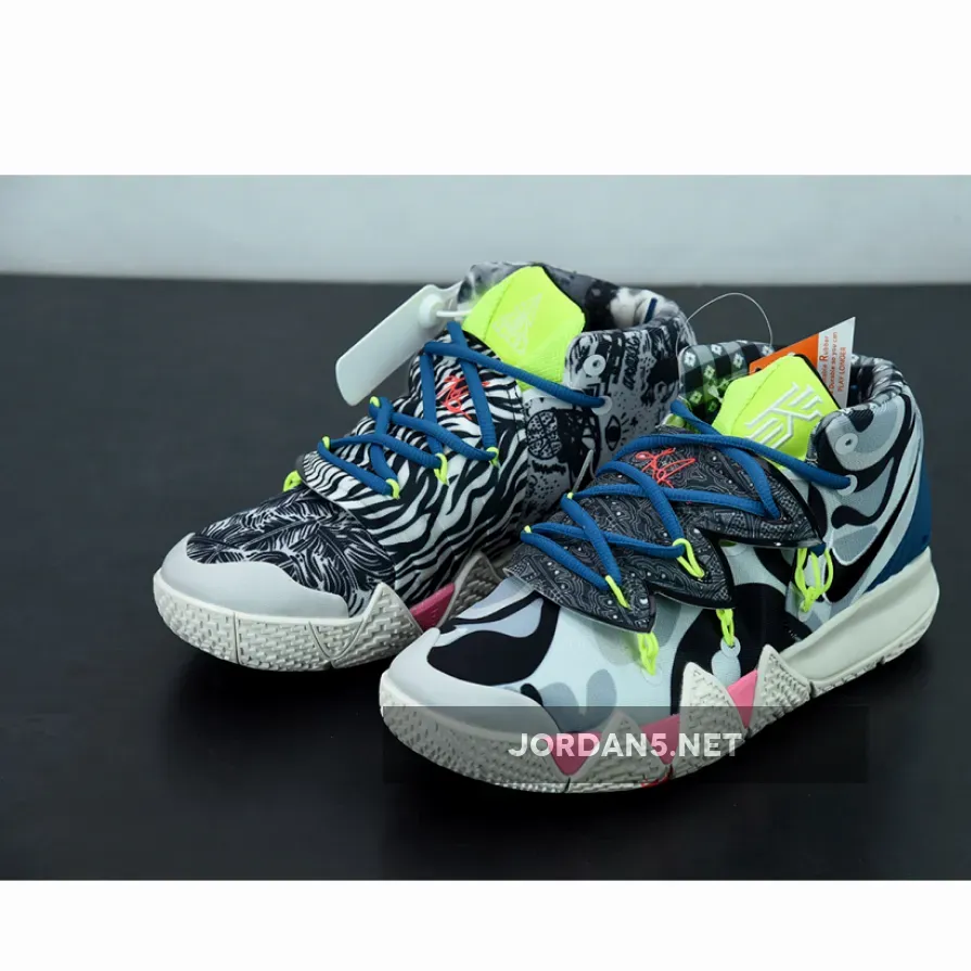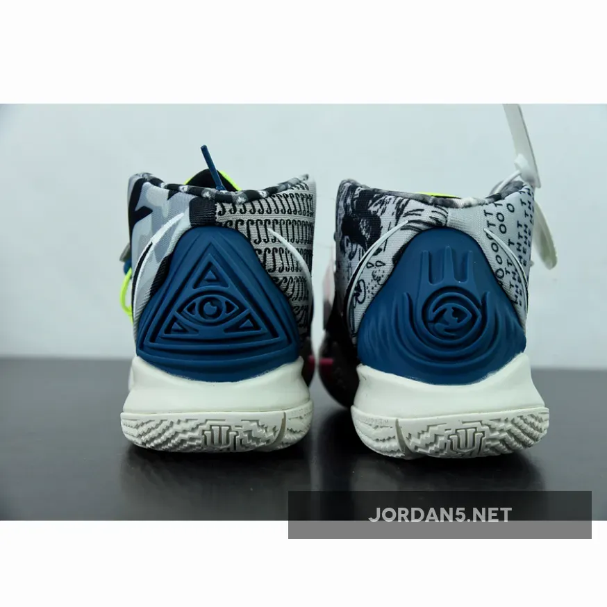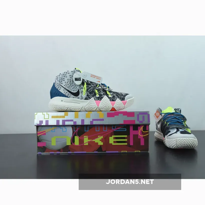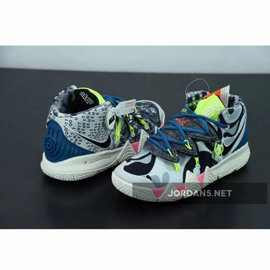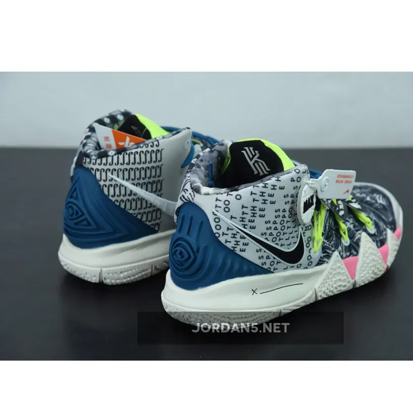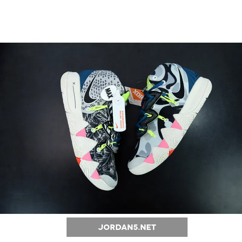 As mentioned, the ‘What The’ theme for this model is brought to us by previous Kyrie models which includes the 4, 5 and 6. Looking closer at this particular pair, it features Black, White and Grey throughout. Highlighting this pair is the use of various patterns which gives each shoe a unique look. Other details includes Neon accents, branding on the tongues while Sail covers the midsole and rubber outsole.
