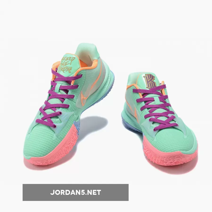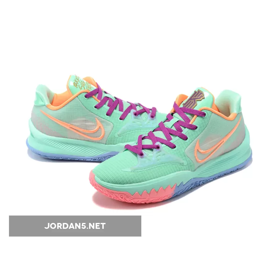 Taking on a bright appearance that is ideal for the summer season, this Nike Kyrie Low 4 pays homage to legendary WNBA player Sue Bird and comes done in a tropical green hue all throughout the mesh and synthetic construction on the upper. For contrast we see the addition of pink, orange, purple, and blue throughout various parts of the shoe. Wrapping things up we see Swoosh branding on the side panels, the Kyrie logo on the left tongue, and #KeepSurFresh on the right tongue.