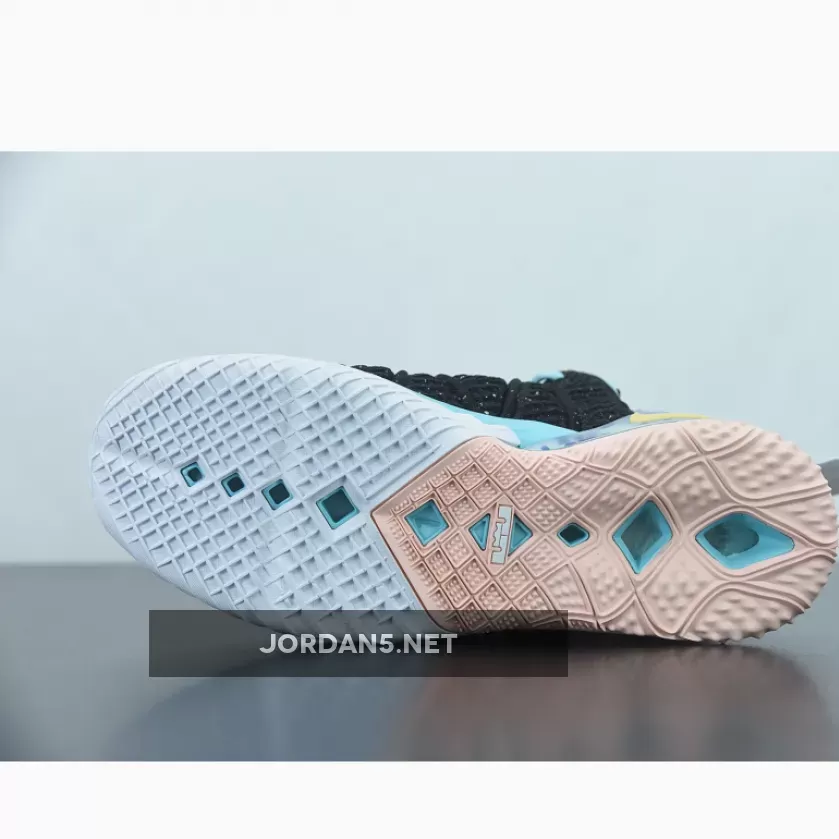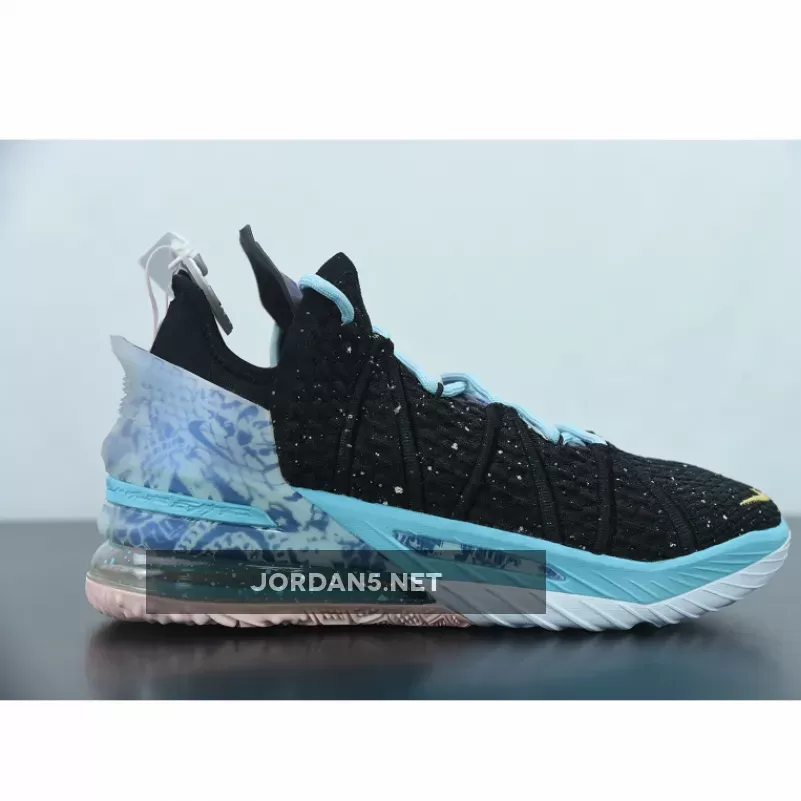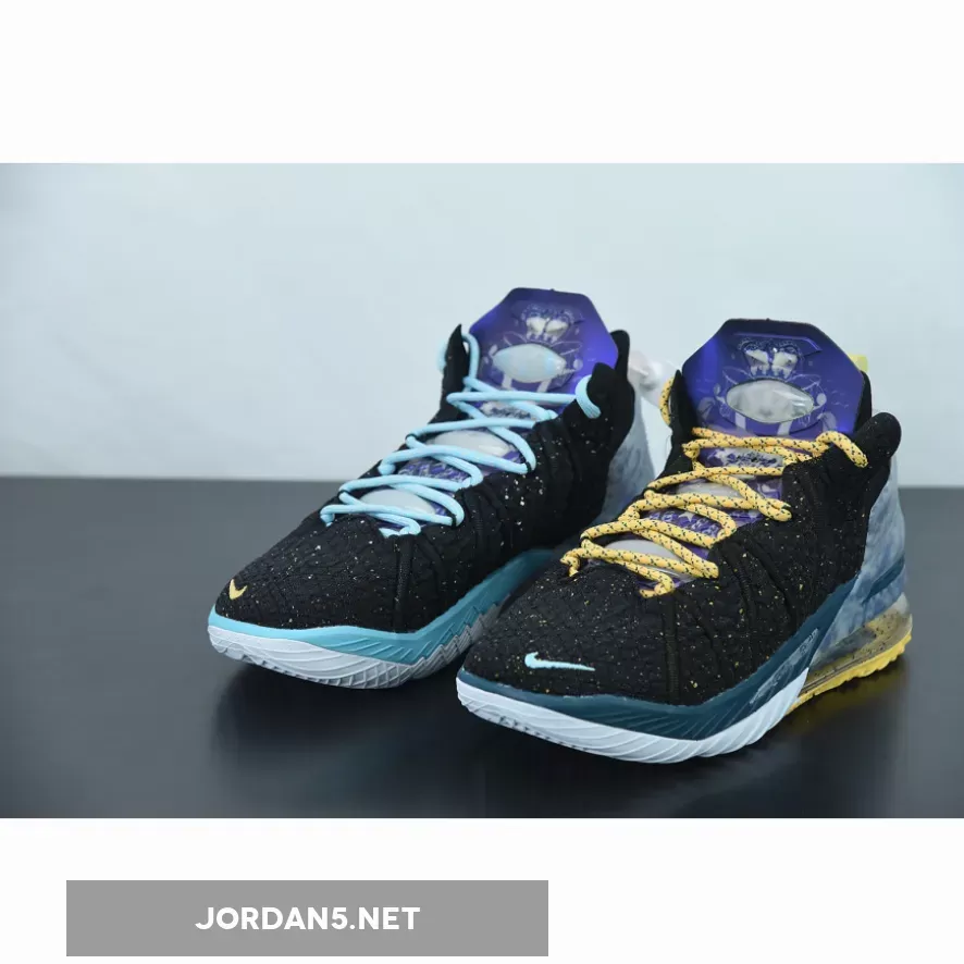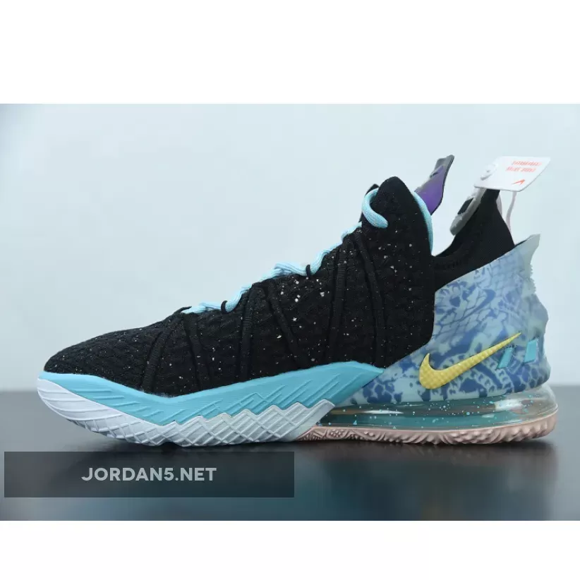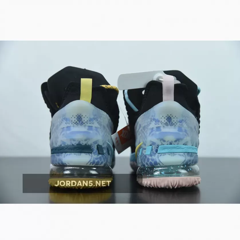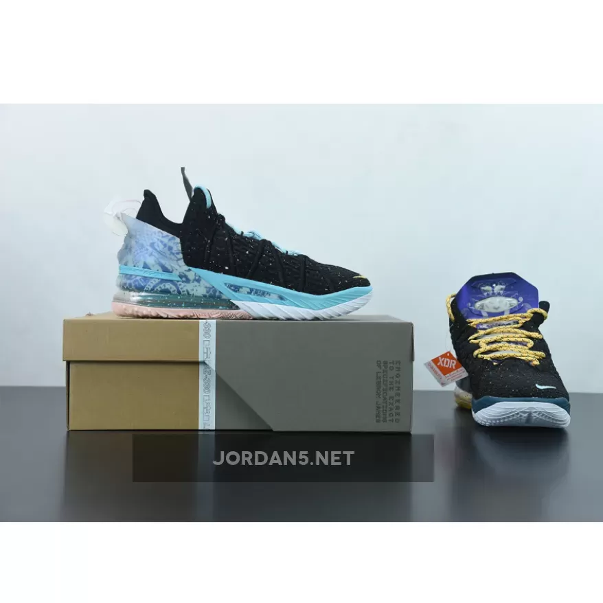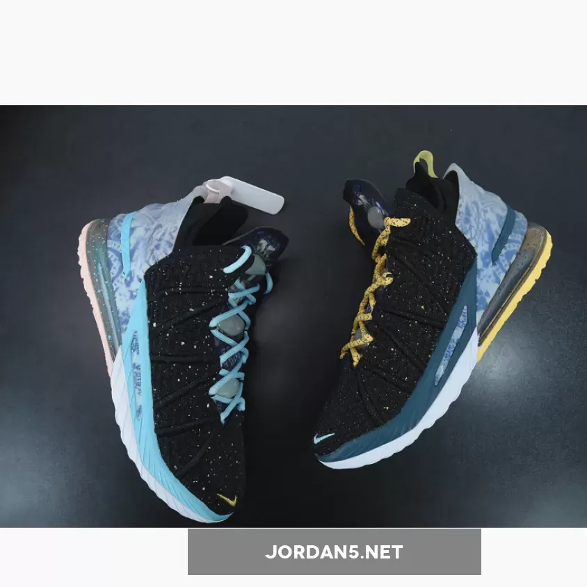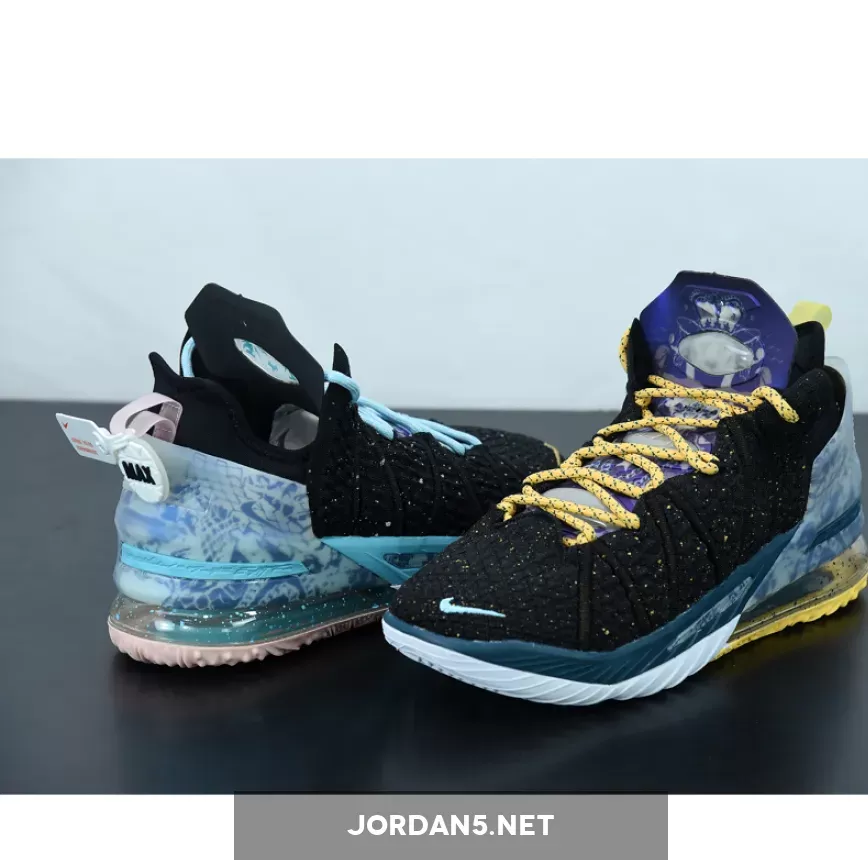 The reflection theme is expressed through slightly altered colors on the left and right shoe, with variations on the sole, logos, heel tab and laces. Iconography representing his 17 seasons to date creates unique collages that appear as graphics on the heel, tongue and sockliner. With a lightweight black Knitposite 2.0 upper, durable molded heel clip, new Air system in the tongue and a full-length Air Zoom unit combined with a Max AIR unit in the heel, this game-changing design elevates the LeBron signature line to the next level.