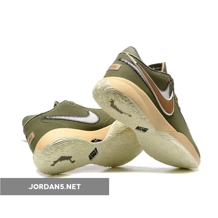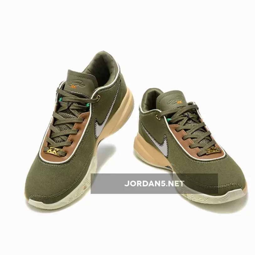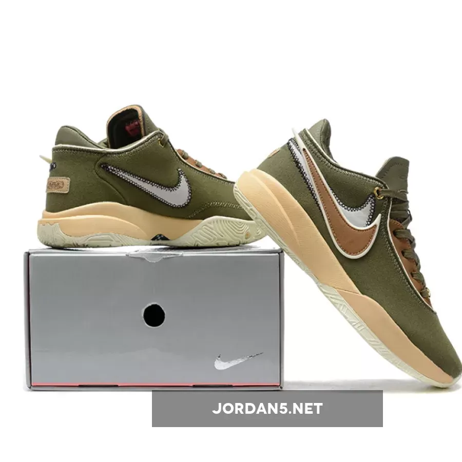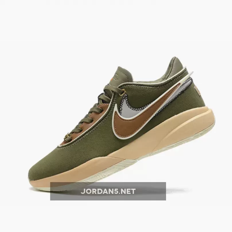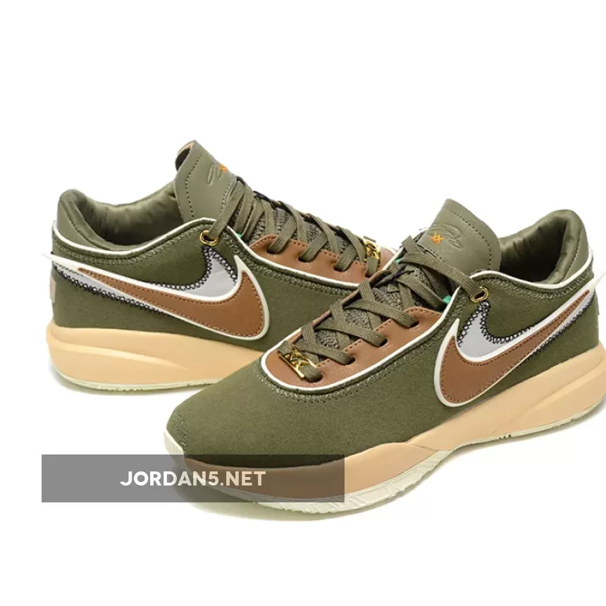 This offering of the Nike LeBron 20 features an Olive suede base with a darker shade of Olive used on the double-stacked Swooshes and eyestay. Other details include a Cream hue on the midsole for an aged look and a Sail rubber outsole.