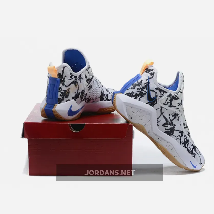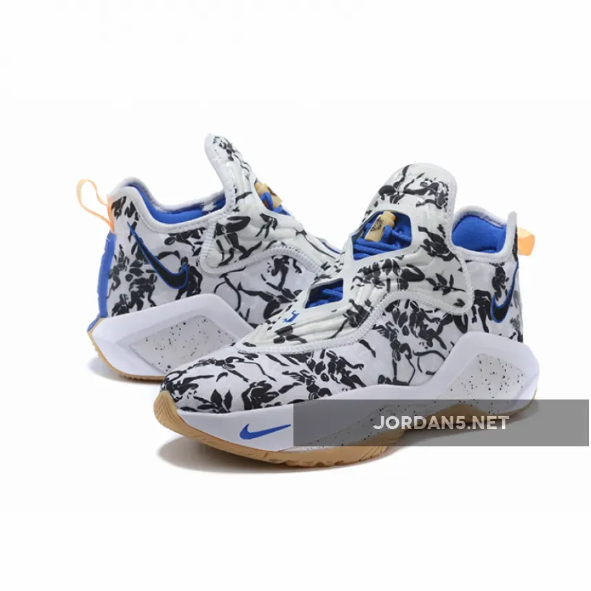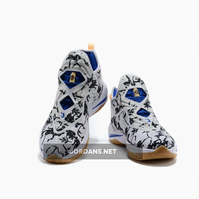 While neutral in color for the most part, this hardwood-ready installment bears the statement pattern which features a collage of solid black floral prints and athlete silhouettes plastered all-over its angelic background (This is the same pattern featured on the insoles of the aforementioned LeBron 18 “Sisterhood”). In addition to this, the pair also boasts bold blue accents reminiscent of James’ past “More Than an Athlete” collaborations that peak out through the underlays, heel molds, and Swooshes, the latter of which borders the lateral Nike check while the medial is hued entirely. Finishing touches arrive by way of speckled midsoles, peachy hits that navigate their way to the lion-adorned lace toggles and heel tabs, as well as the treading which is completed with gum exteriors.