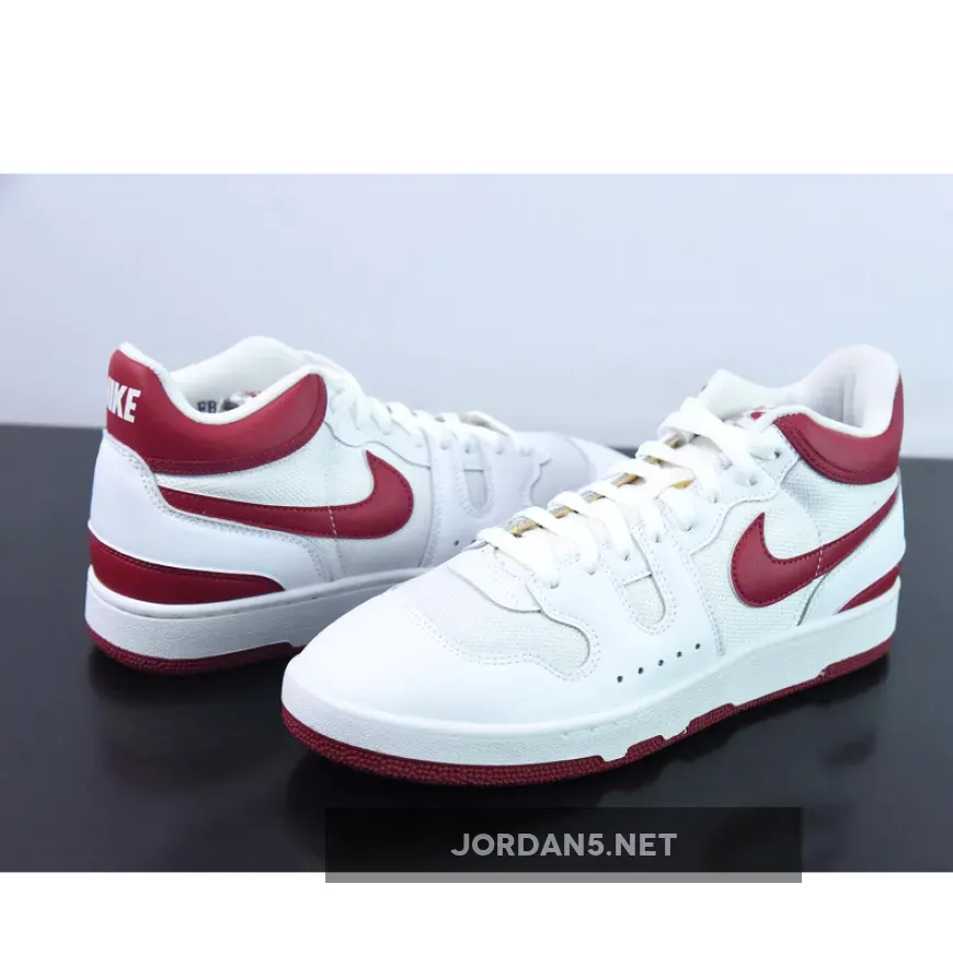 this “Red Crush” release introduces a new tan/white checker pattern on the tongue. Upper halves are made up of a mixture of breathable mesh and smooth leather, the former of which gives its side panels structure while the latter is utilized for the overlays. “White” is featured predominately throughout, while the titular hue arrives on the collars, heels, tongue branding, rubber outsole, and profile Swooshes. In terms of branding, you’ll find the usual Nike Sportswear logo on the tongues while a “Nike” hit lands on the heel. Furthermore, the shoe’s size and style code is printed on the interior medials.
