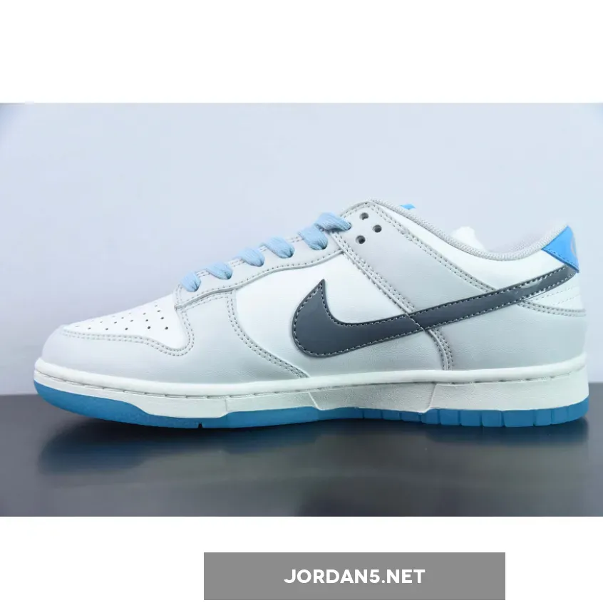 Flaunting a clean color scheme of white, grey and light blue, the low-top boasts a smooth leather construction with white for its upper and grey adorning its overlays. Leather underlays and panels across the upper divvy up “colorless” and near-“colorless” tones. Swooshes on the sidewalls and upper heel overlays deviate from their understated surroundings in sky-reminiscent contrast.