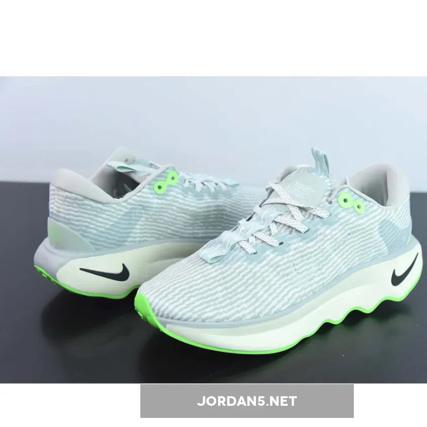 “I’m super stoked with my new Nike Motiva! The light silver-grey upper is comfy and sleek. Shipping was fast (3 days!) and packaging was solid. The green outsole adds a nice pop of color. Overall, I’m really happy with this purchase. Would recommend to anyone looking for a stylish, comfortable shoe.”