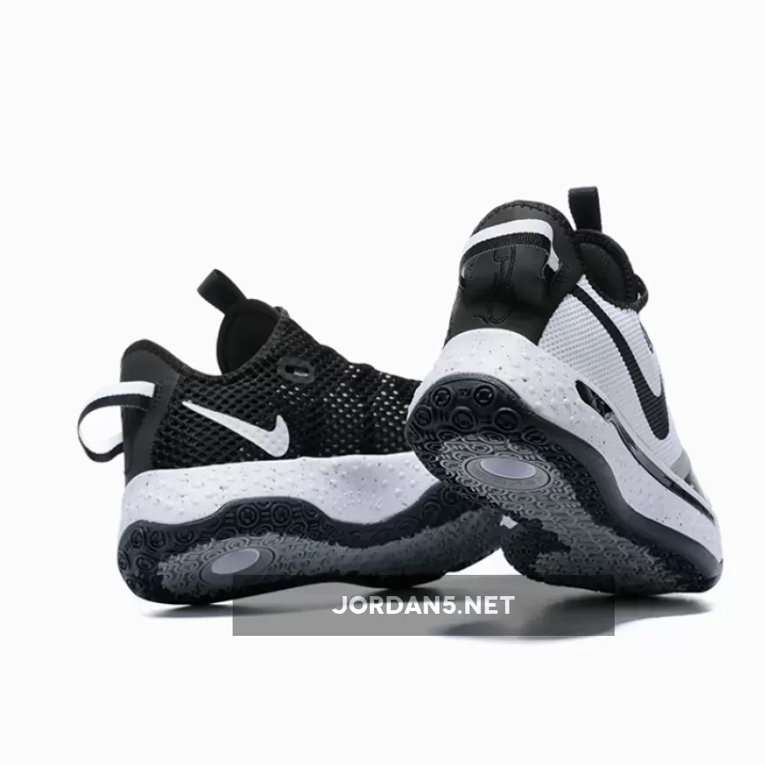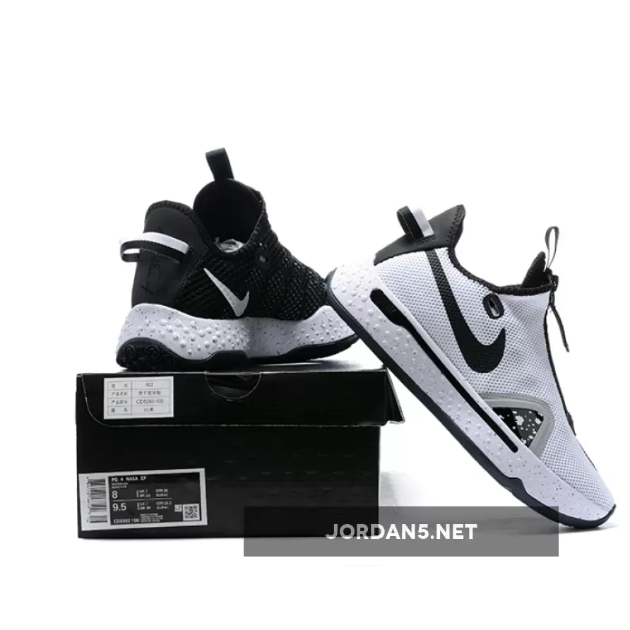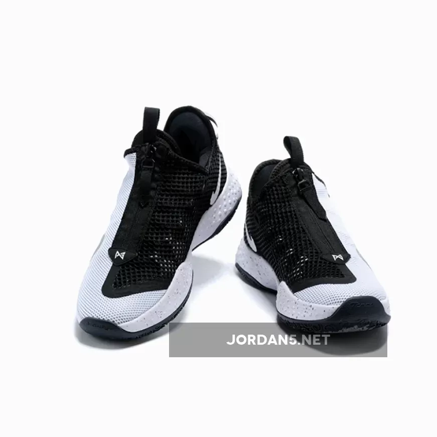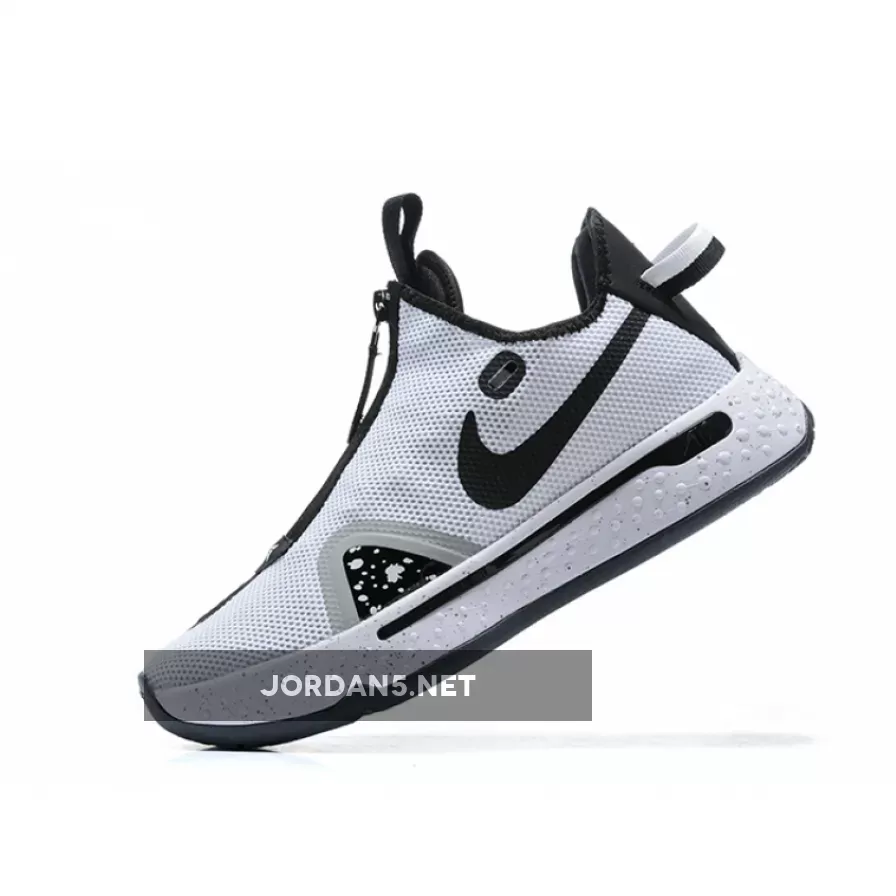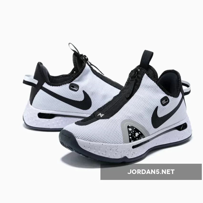 Dressed in a White, Black, and Pure Platinum color scheme. This Nike PG 4 sports has a yin-yang theme with White covering the lateral side and Black on the medial. Its signature zipper closure revealing the shoe’s lacing system atop a speckled midsole completes the design.
