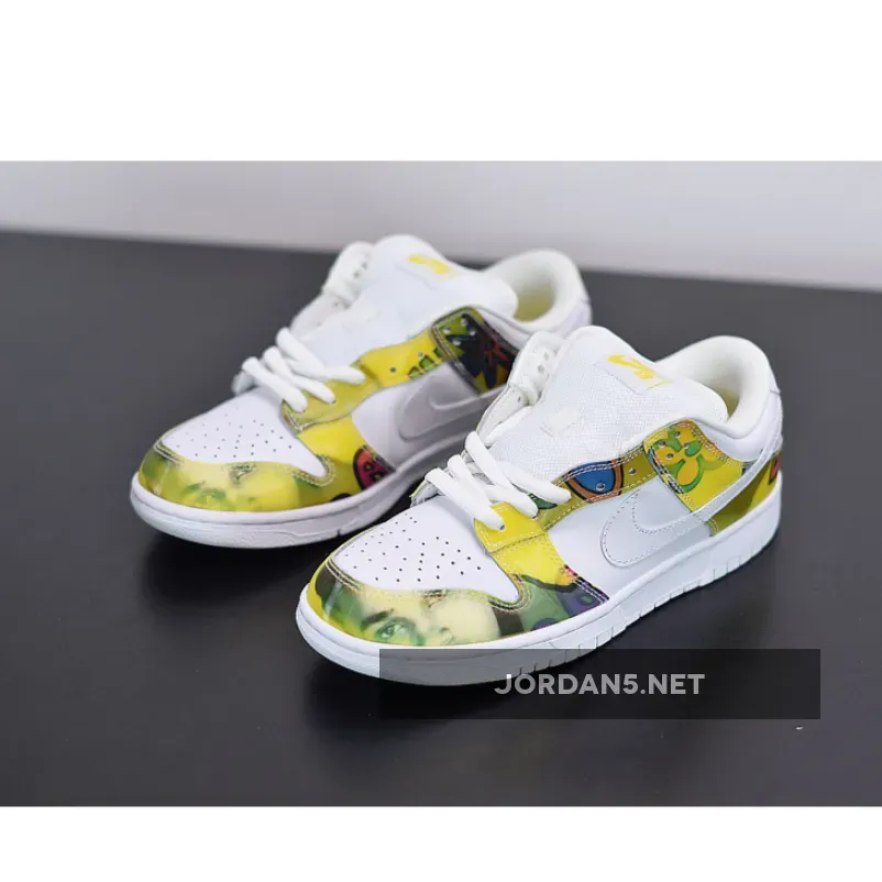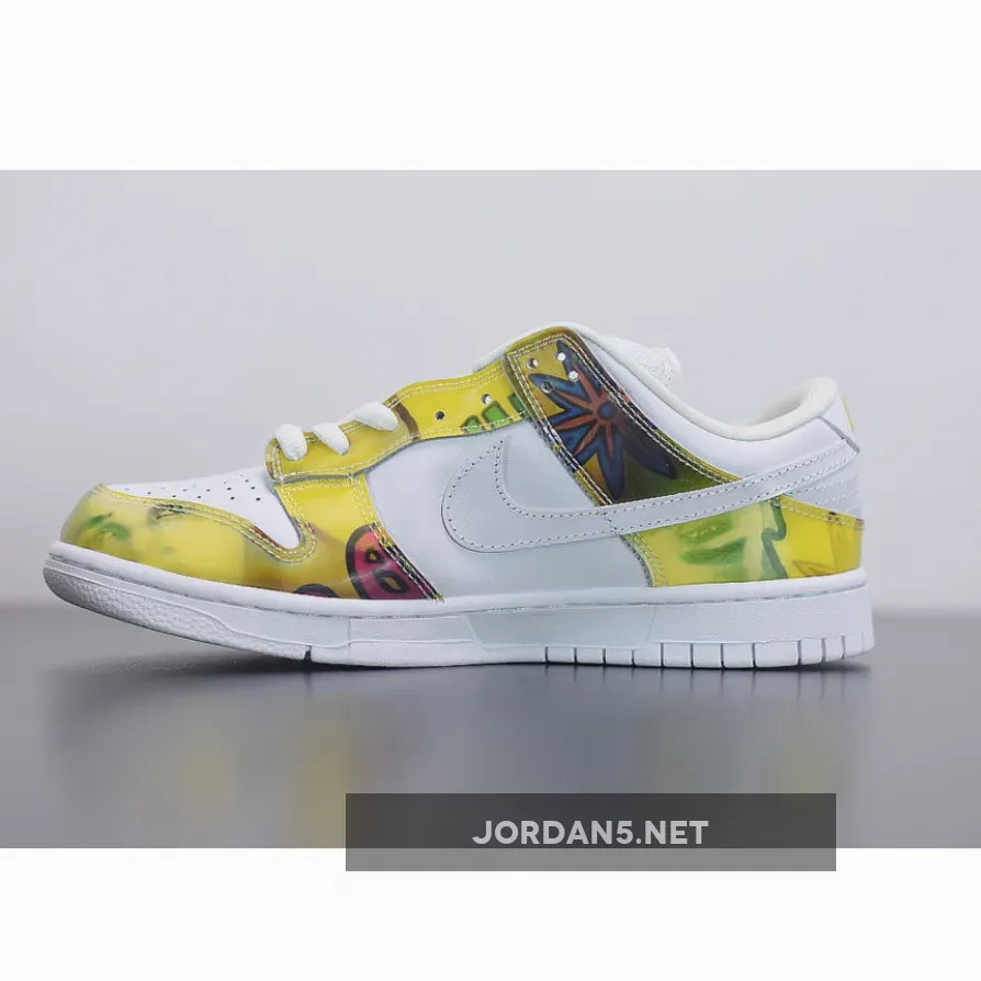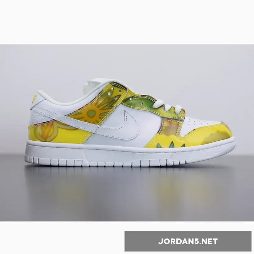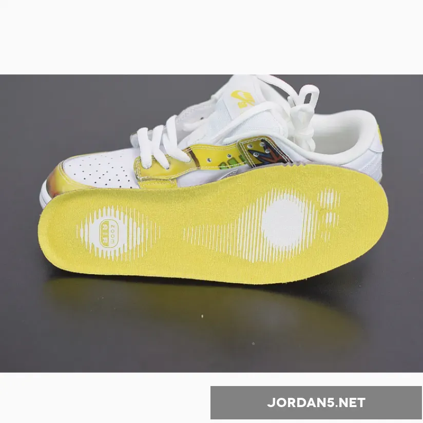 The predecessor to the highly sought after De La Soul Highs, the low top versions weren’t as popular in retrospect, but still a nice, creative shoe. If you haven’t guessed, these sneakers were designed for hip-hop group De La Soul. The uppers feature yellow graphics, as seen on De La Soul’s first album: 3 Feet High and Rising. The complemented with white leather on the toe, side panels, and swoosh