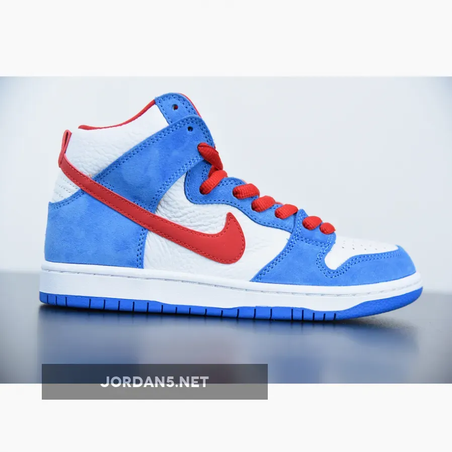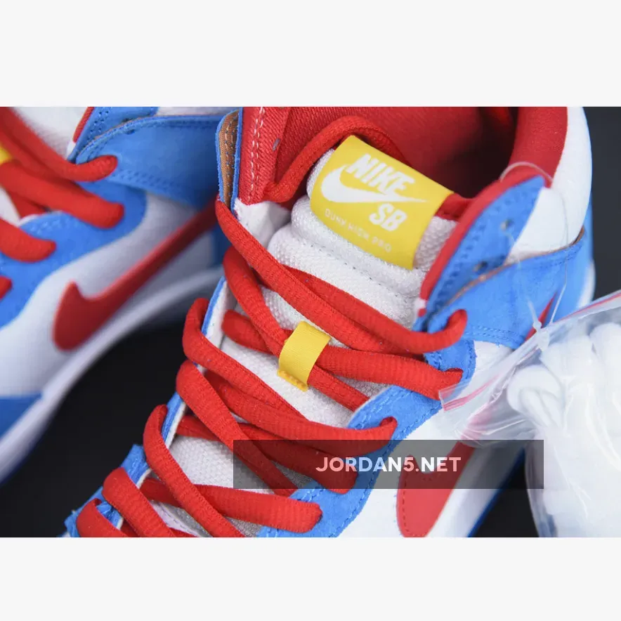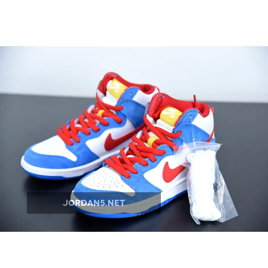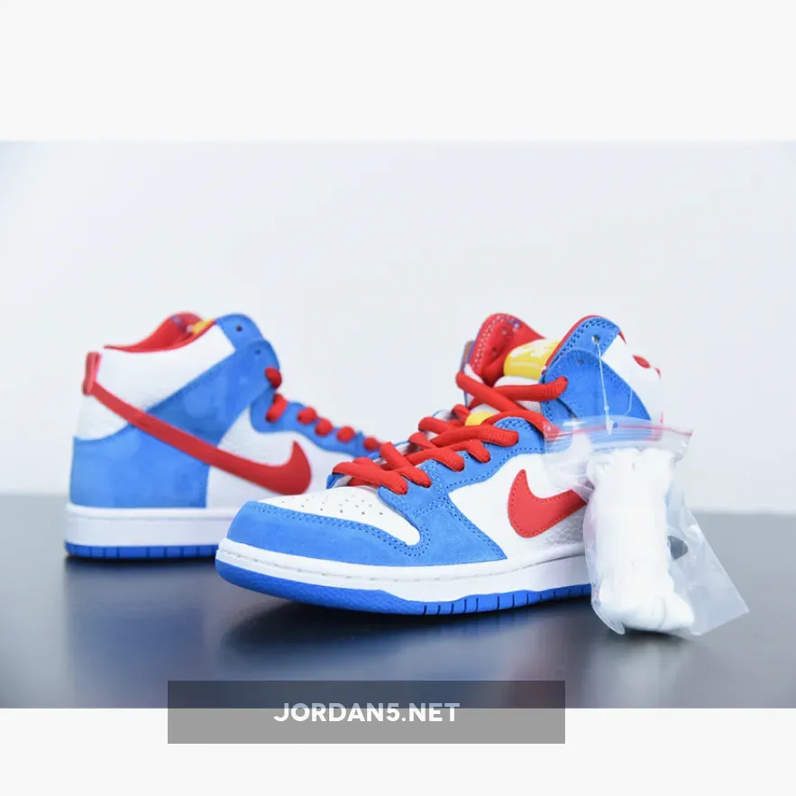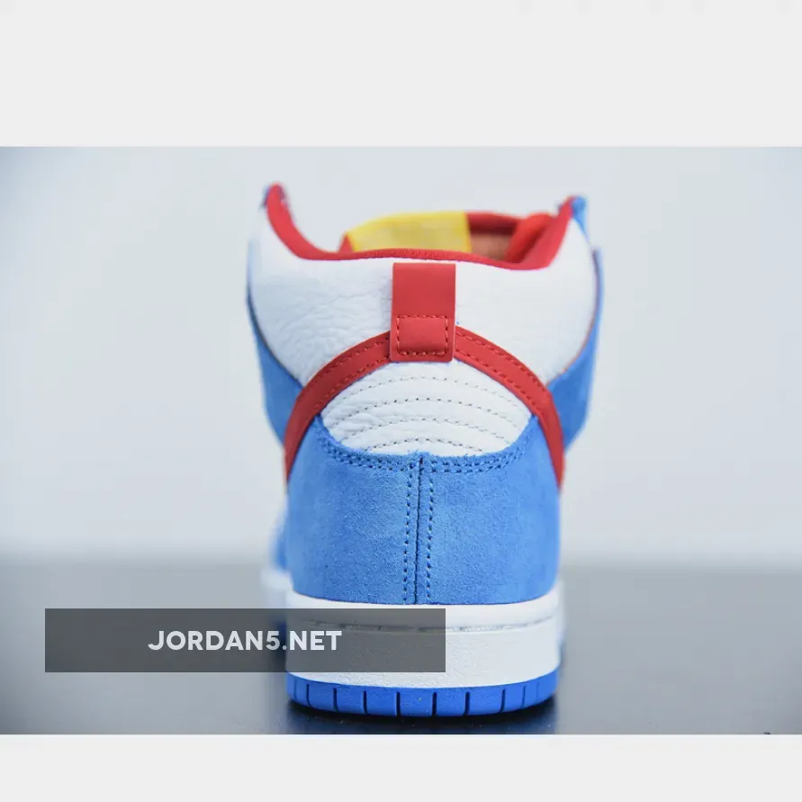 Dressed in a Light Photo Blue, Speed Yellow, and University Red color scheme. This offering of the SB Dunk High comes dressed in Doraemon’s color blocking. It features a White leather base with Blue suede overlays paired with a Red Swoosh and matching laces. Yellow tongues and and lace locks resembles his bell-adorned collar. A White midsole atop a Blue rubber outsole completes the design.
