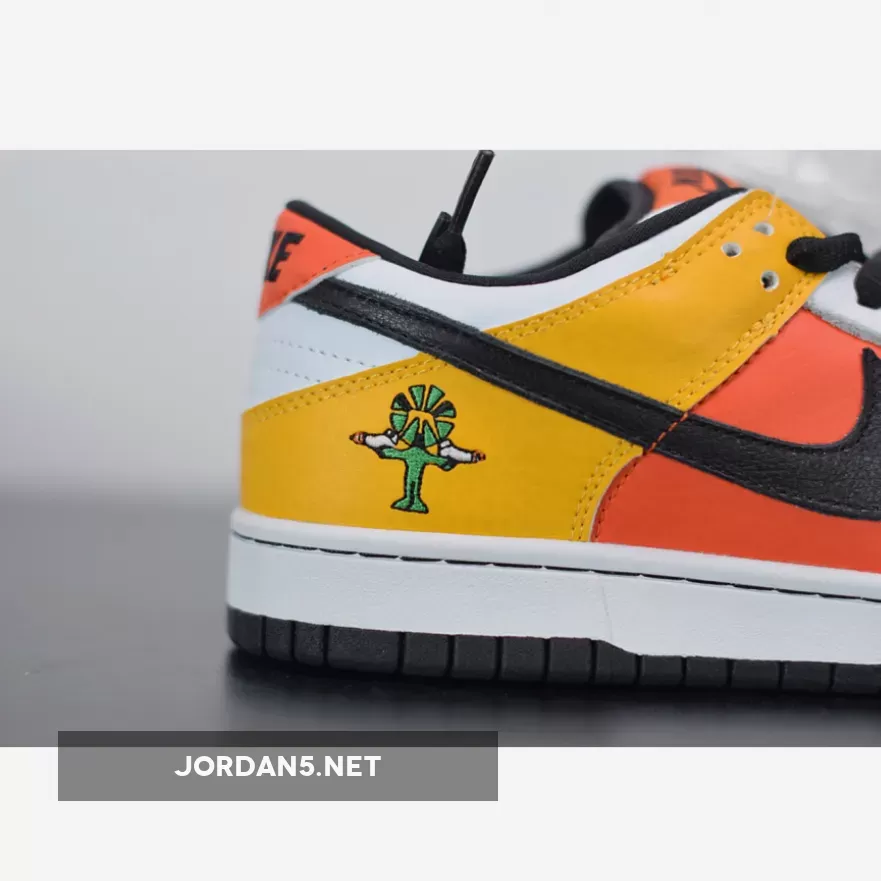 The Nike SB Dunk Low ‘Home Raygun’ offers a striking design with bold color combinations and an eye-catching logo. The combination of black and orange hues creates a dynamic look. The high-top design provides ankle support, while the quality construction ensures comfort and performance. A must-have for sneakerheads and fans of unique footwear.