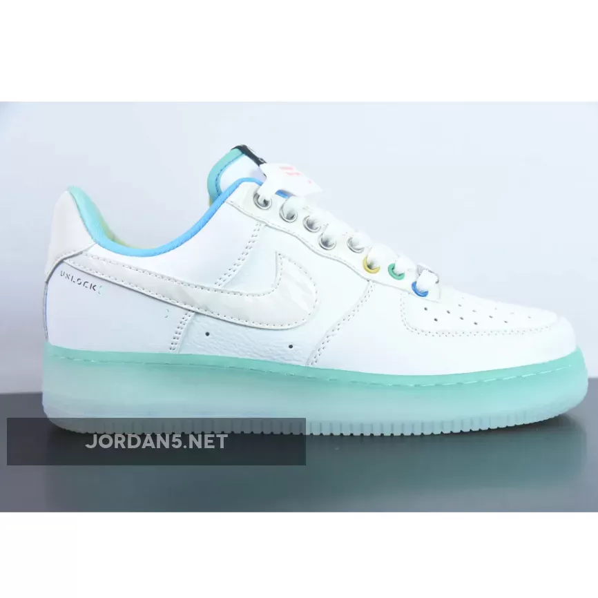 the “Unlock Your Space” concept previously appeared on other beloved silhouettes – including the Air Max 1. Seemingly a play on the basketball idea of “creating space,” Each pair comprises vibrant colors, abstract patterns, and “blank spaces” begging for users to customize their Air Force 1‘s. The latest style favors a clean look that’s animated by hits of blue, green, and yellow. A semi-translucent, gradient outsole appears on the latest version of Kilgore’s 40-year-old design. Special logos at the spine, sockliner, tongue, and lace dubrae round out the shoes.