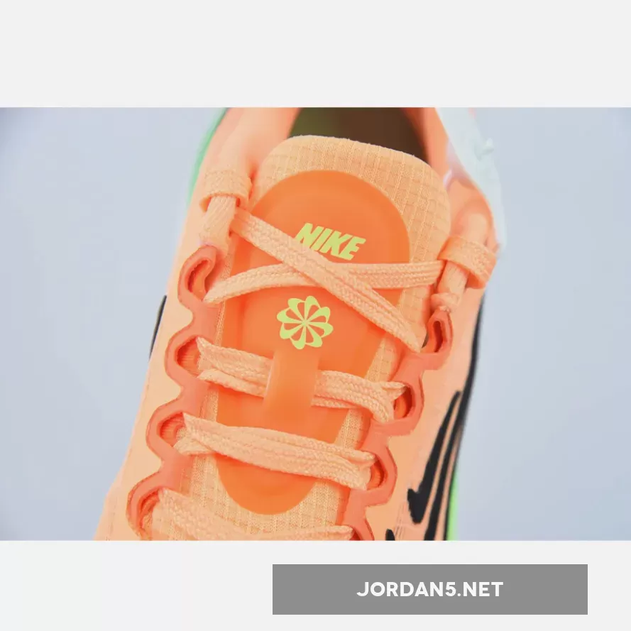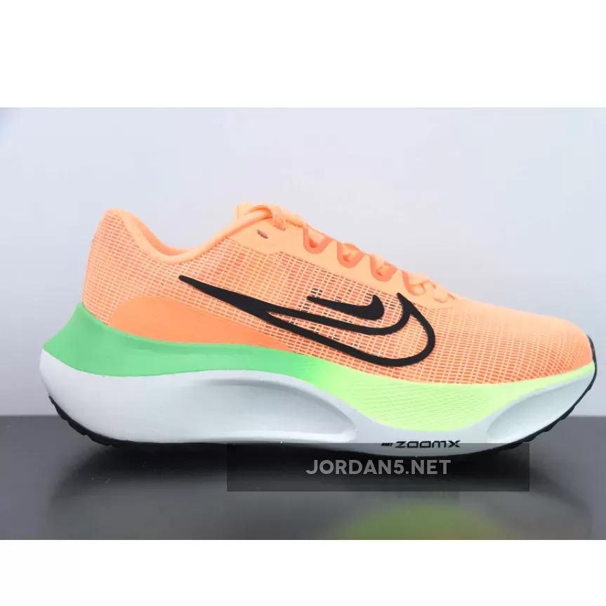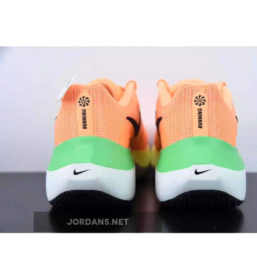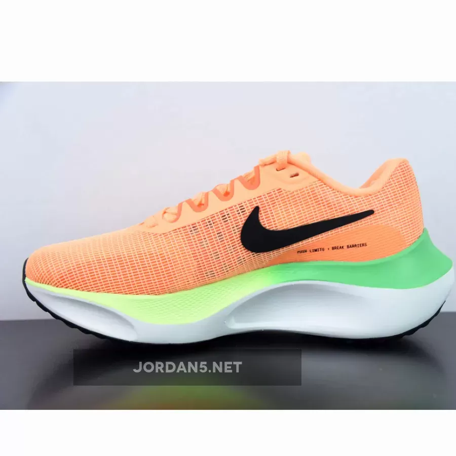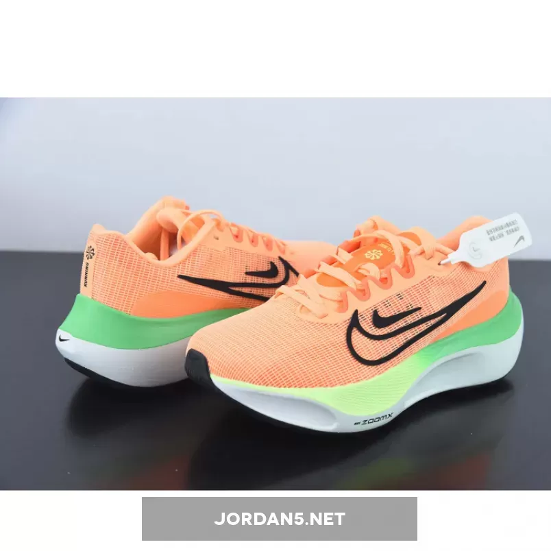 “Love my new Zoom Fly 5! Shipping was super fast (3 days!) and packaging was great. The Total Orange Ghost Green colorway is so unique and fun. Comfortable and supportive, perfect for my long runs. Only minor issue: the laces can be a bit finicky to tie. Overall, 4.5/5 stars”
