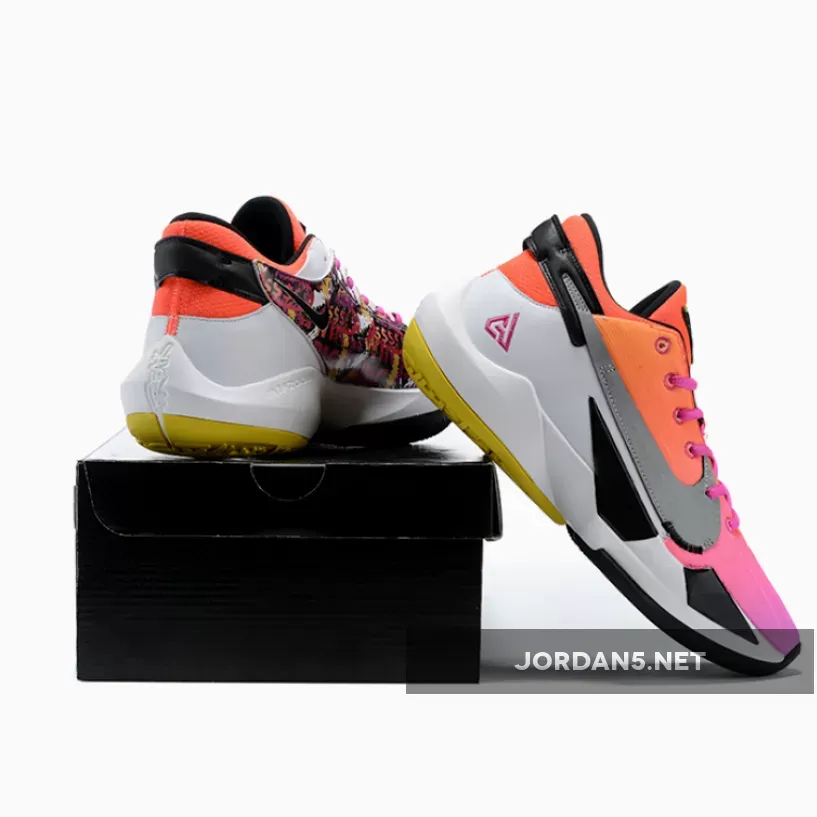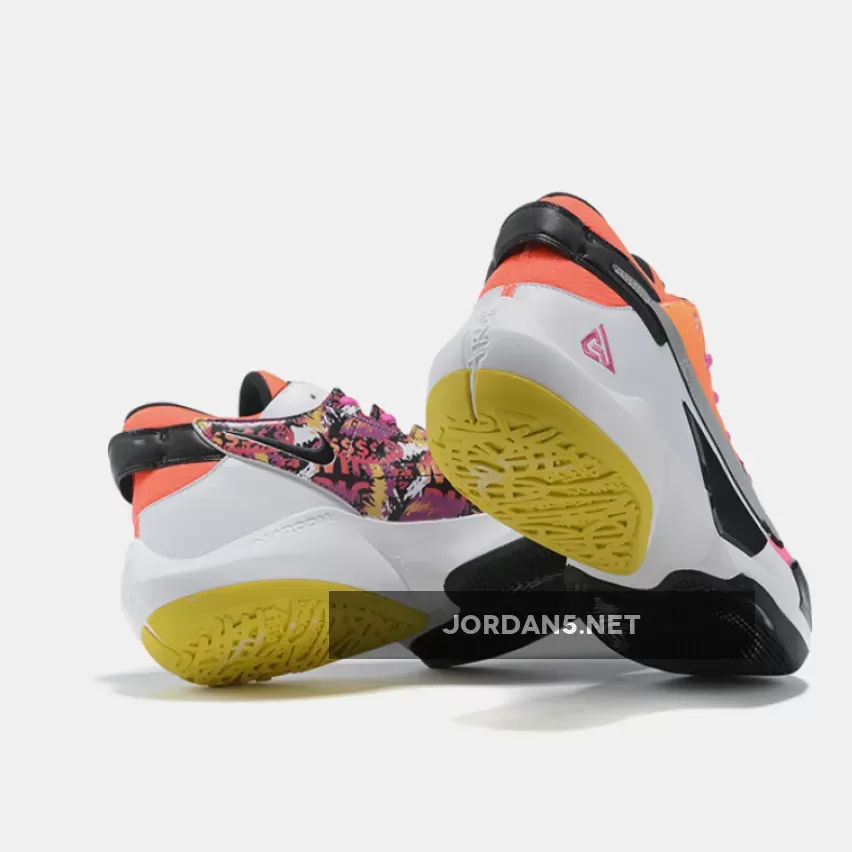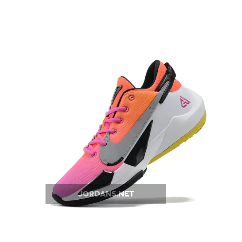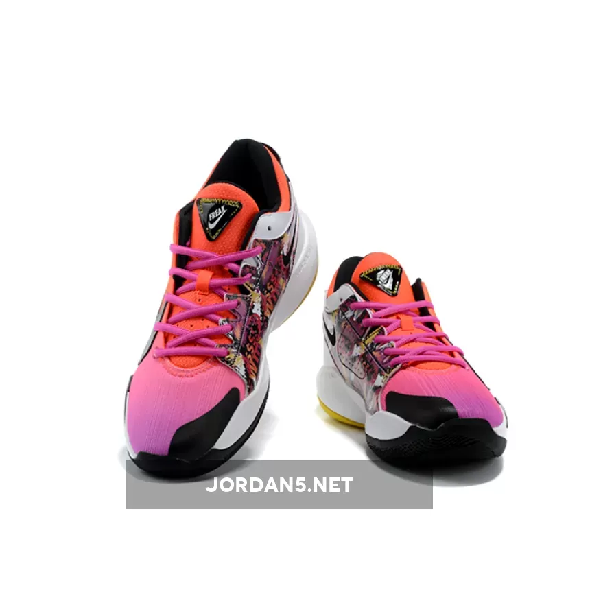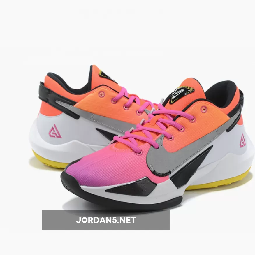 This edition of the Freak 2 sports a Sunset-like color blocking featuring a Pink and Orange gradient upper paired with Black detailing and White leather. An oversized 3M reflective Swoosh on the lateral, while the medial displays a loud graphic with “WIN” and dollar signs. A White midsole atop a Yellow and Black rubber outsole completes the design.