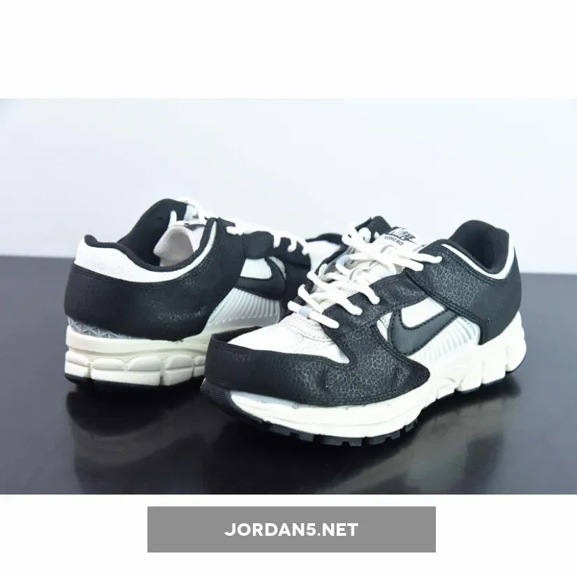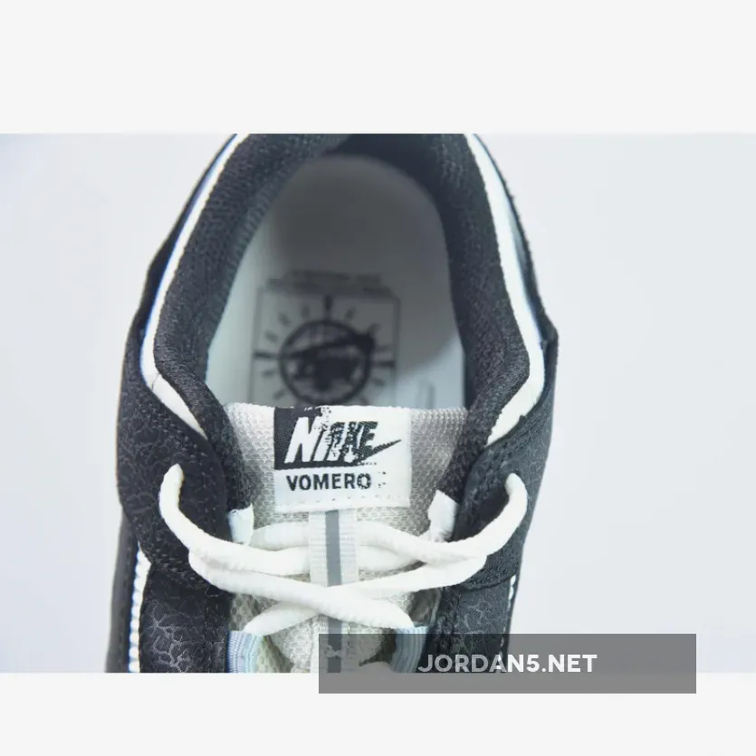 We saw the Dunk Low this week with patterns and colors inspired by the Zoom Vomero 5 runner, now the ZV5 has surfaced with pieces of the Dunk applied, and dressed in a Panda color scheme. The leather overlays swiped from the Dunk Low appear in black and cover the heel, eyestays and toe box of this latest Vomero, fastening to the synthetic and mesh uppers via the lace unit. In place of the Bill Bowerman motif on the insoles, the Zoom Vomero 5 ‘Timeless’ receives a brand stamp exclusive to this release, with Nike’s logo appearing on the right and a decidedly Dalí-esque pocketwatch stamped on the left.
