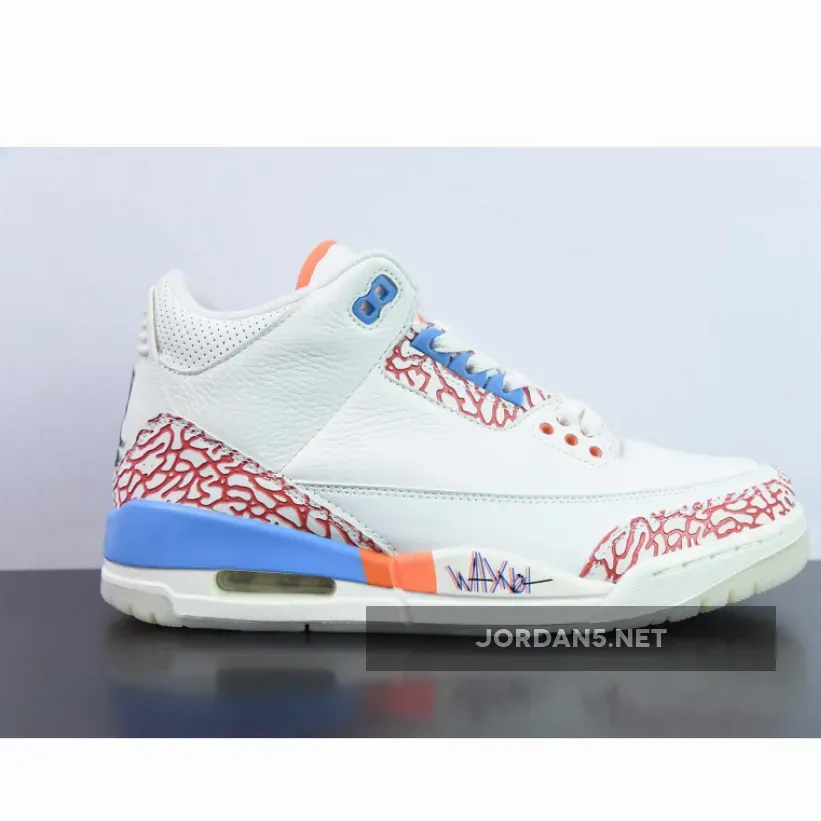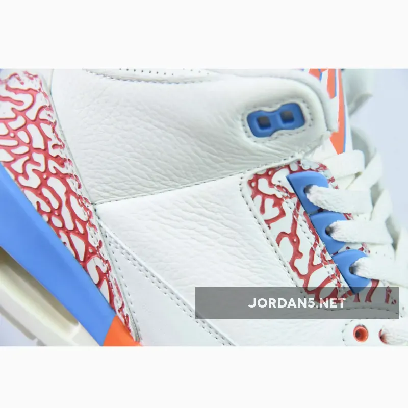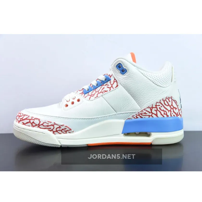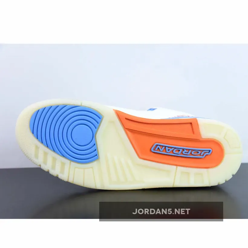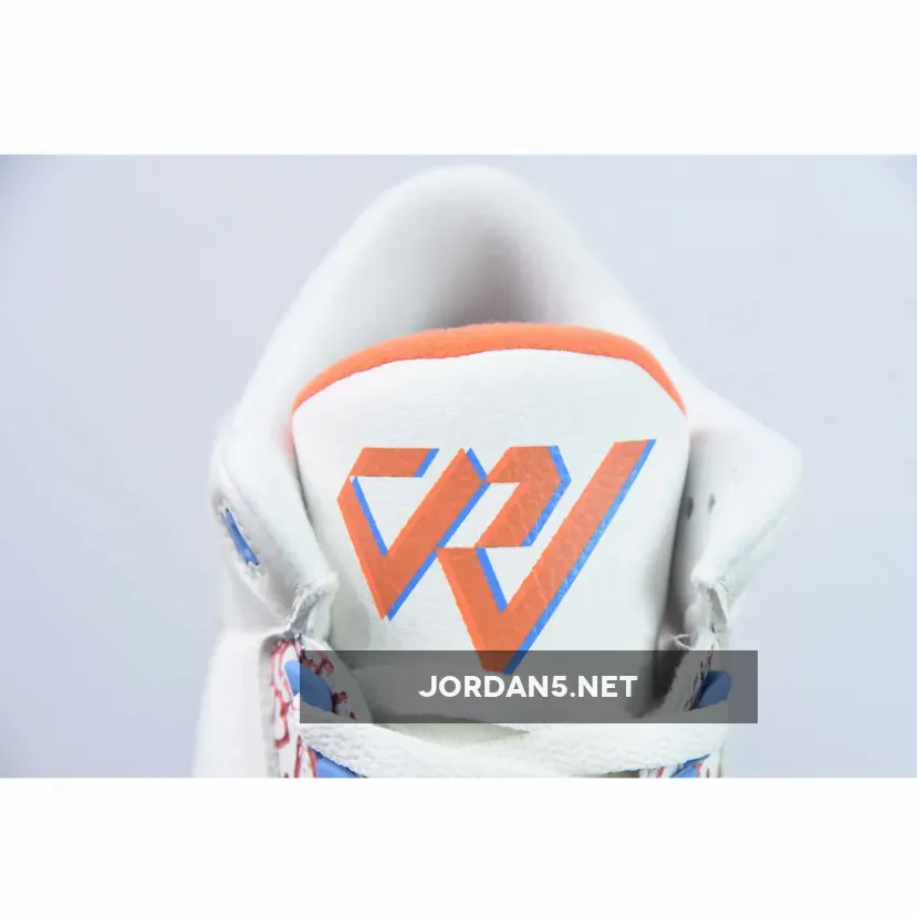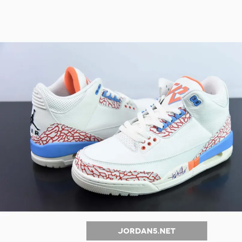 This custom PE uses the colors of the Oklahoma City Thunder as this was Westbrook’s team at the time. The upper is crafted with white tumbled leather and features perforations on the collar and tongue. The tongue features Westbrook’s personal logo, while a black Jumpman logo adorns the heel and insole.