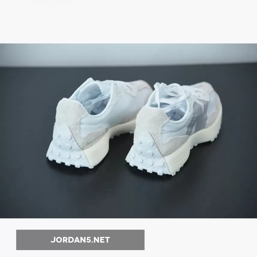 The subtle and simple colour palette only has variations of grey and white on the multi-material upper body. The iconic design of MS327 comes from the vintage 1970s and gets a modern upgrade for this look. This sleek and stylish silo comes doused in archival energy and contemporary aesthetics too. The premium grey velvety suede overlays cover the steel grey nylon underlays. As a result, the walls are durable as well as flexible. White “N” logo on the sidewall matches the laces, inner lining, and tongue tab. Similarly, the lightweight EVA midsole joins this palette, but with its off-white shade. Finally, a black rubber outsole with rubber caps finishes this design, and we already mentioned the blue brandings on the tongue. You can recognise this feature from the iconic New Balance 355.