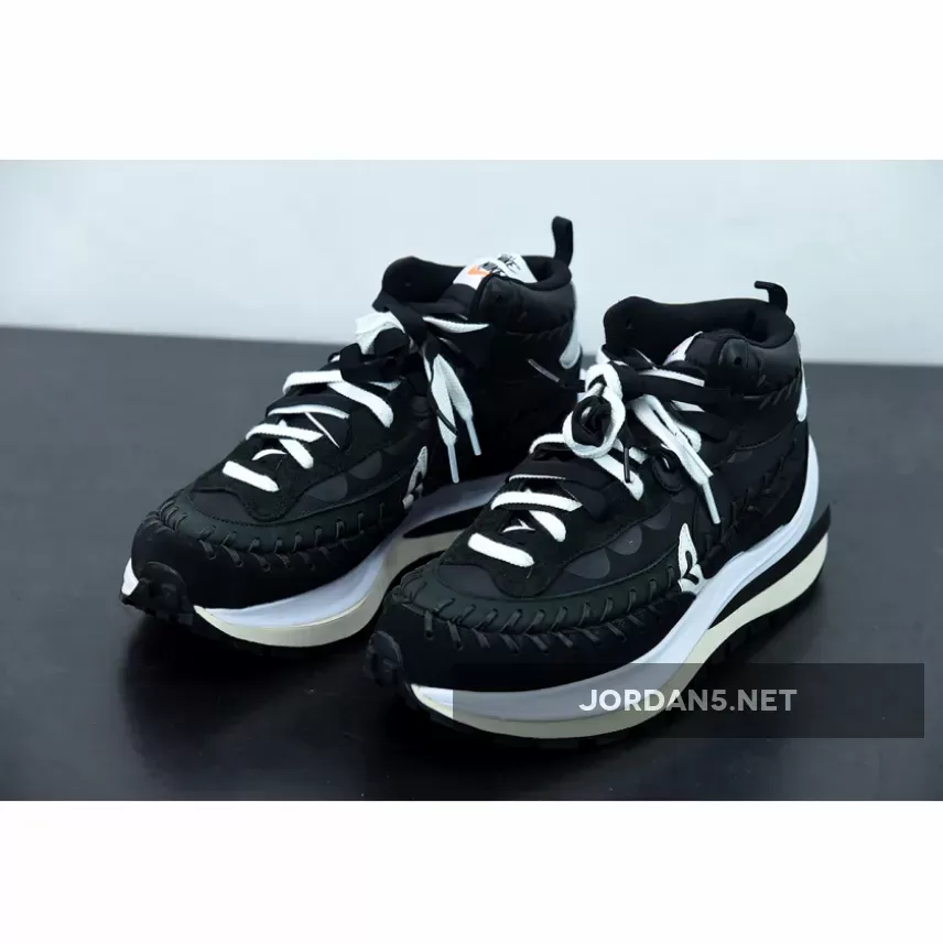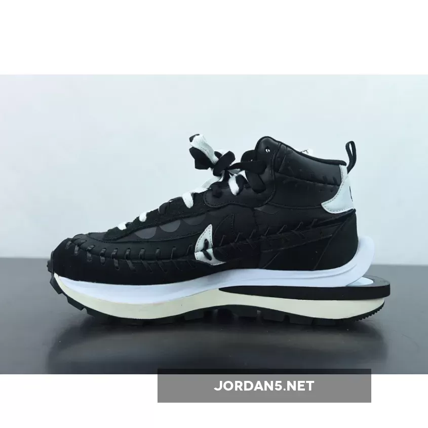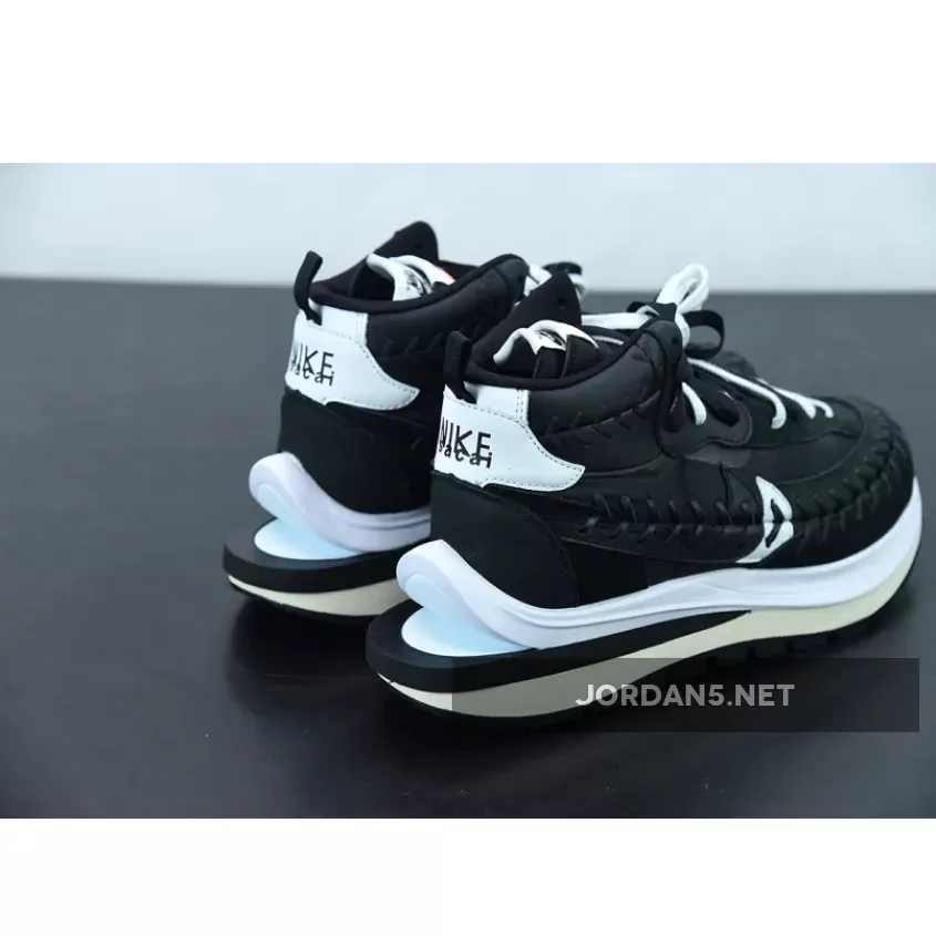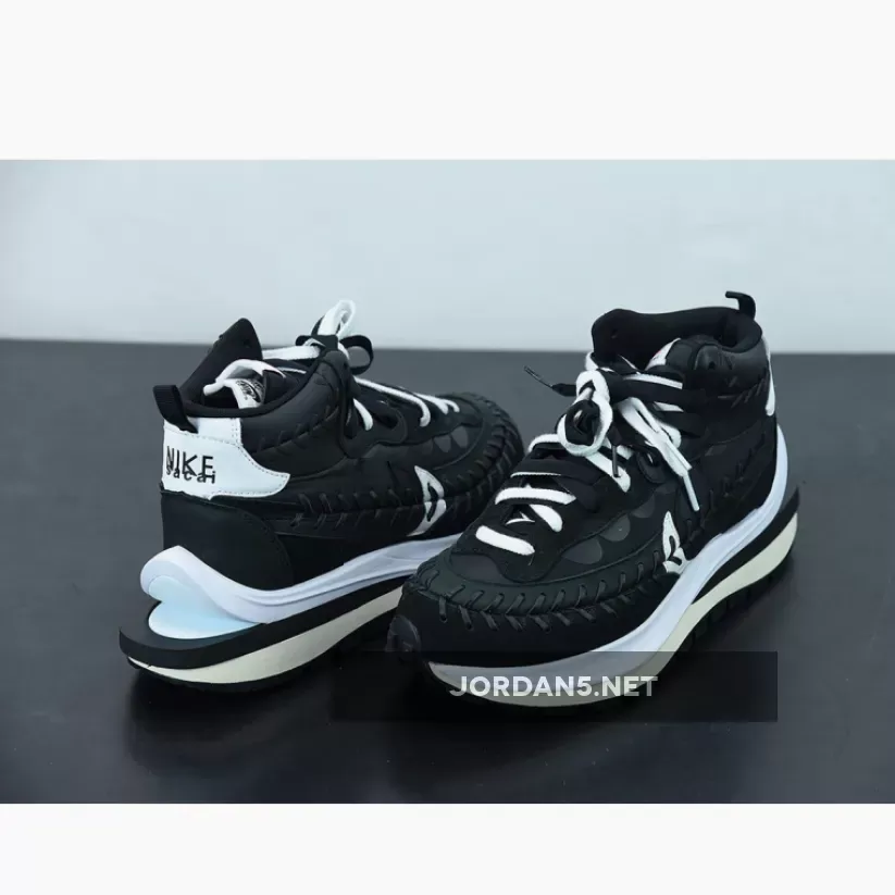 The model appears to be a mid-top version of the Nike VaporWaffle dressed in a Black and White color blocking.