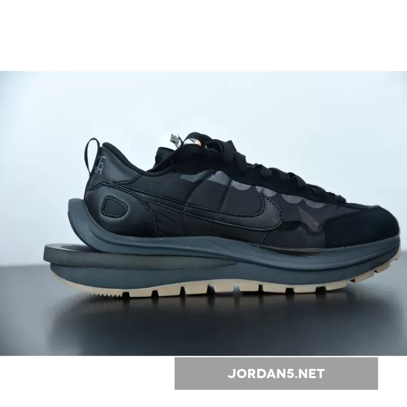Run in style with the sacai x Nike VaporWaffle Black Off Noir. Chitose Abe’s Japanese luxury brand puts a fashionable twist to the athletic silhouette that makes it sleeker than ever. It features a full nylon construction that’s reinforced with suede and leather panellings. Like other Nike VaporWaffle, this pair doubles down on the details which include the dual tongue tags and laces.