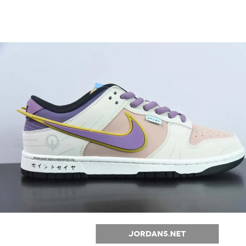 Get the latest Saint Seiya x Nike Dunk Low Custom White Purple Pink at unbeatable prices on JORDAN5.NET.
