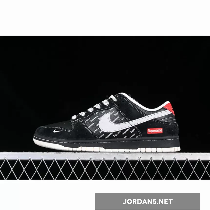 Upgrade your wardrobe with SB DUNK LOW SUPREME BLACK/GREY/RED from JORDAN5.NET.