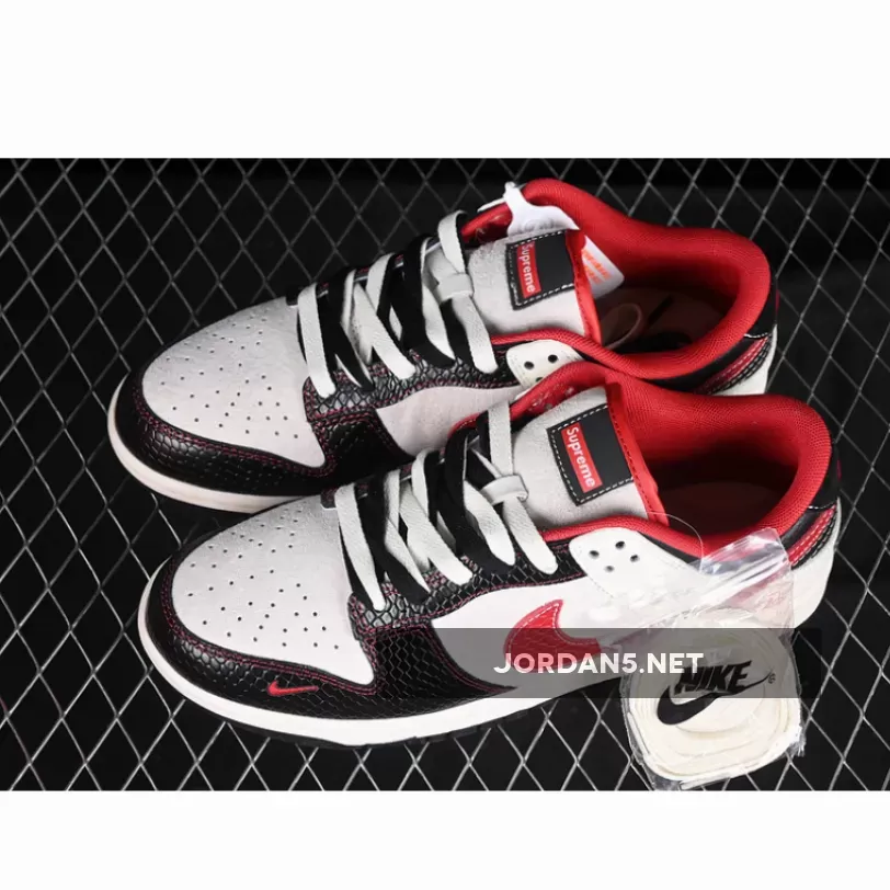 Find your perfect fit with SB DUNK LOW SUPREME BLACK/WHITE/RED on JORDAN5.NET.