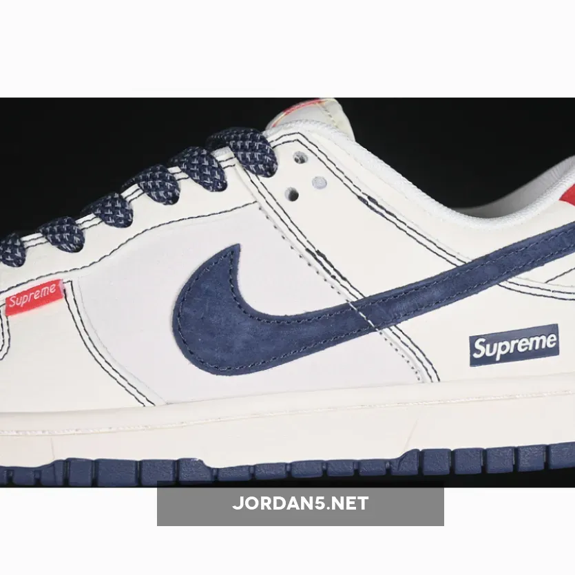 Explore a wide range of SB DUNK LOW SUPREME WHITE/BLUE/RED on JORDAN5.NET.