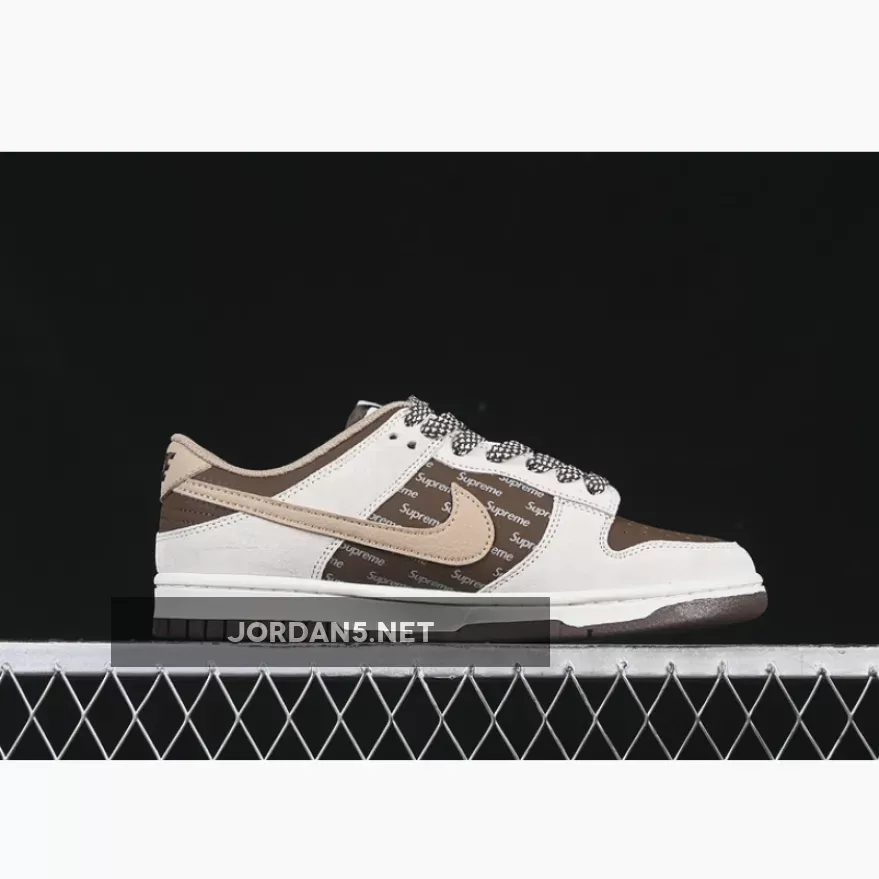Now Buy SB DUNK LOW SUPREME WHITE/BROWN Save Up 50% From Outlet Store at JORDAN5.NET.