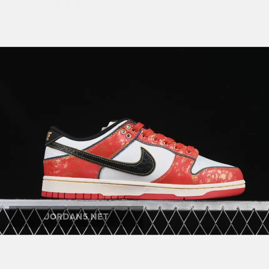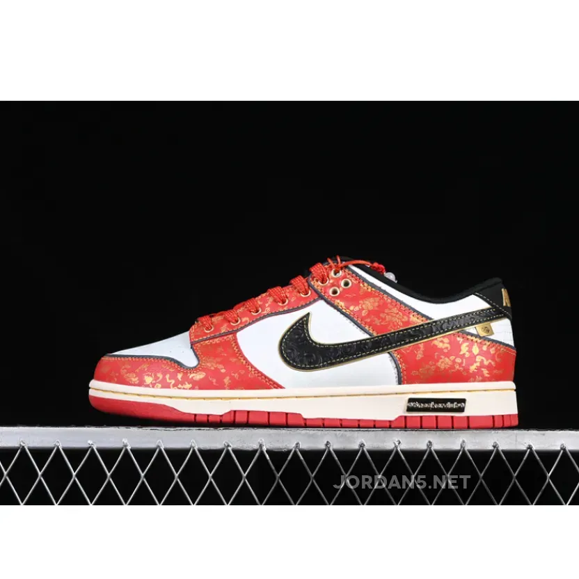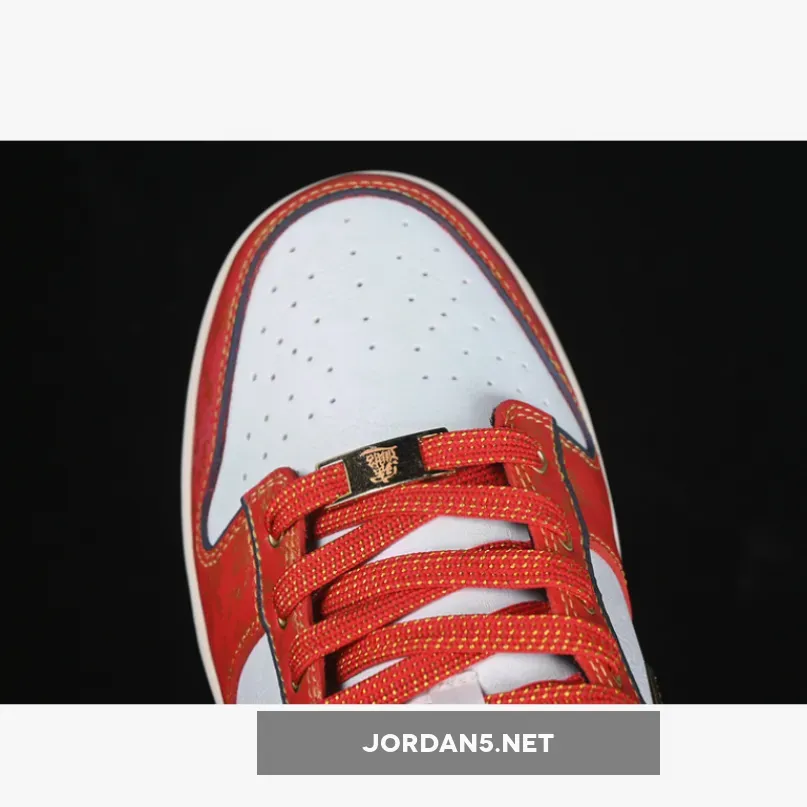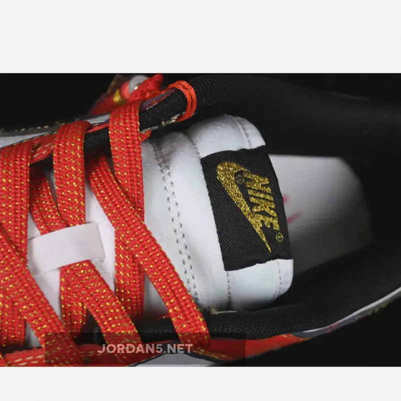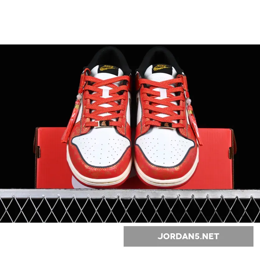 Get ready for any adventure with SB DUNK LOW WHITE/BLACK/RED/GOLD from JORDAN5.NET.