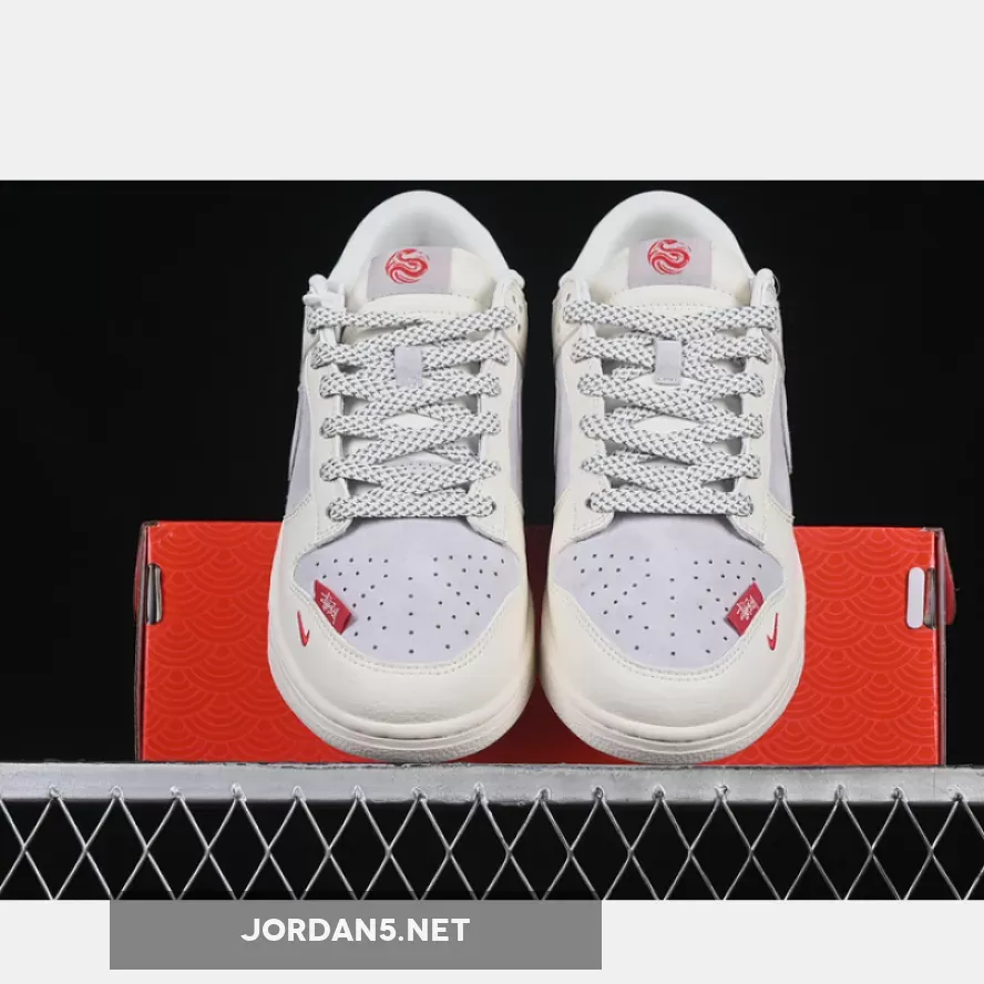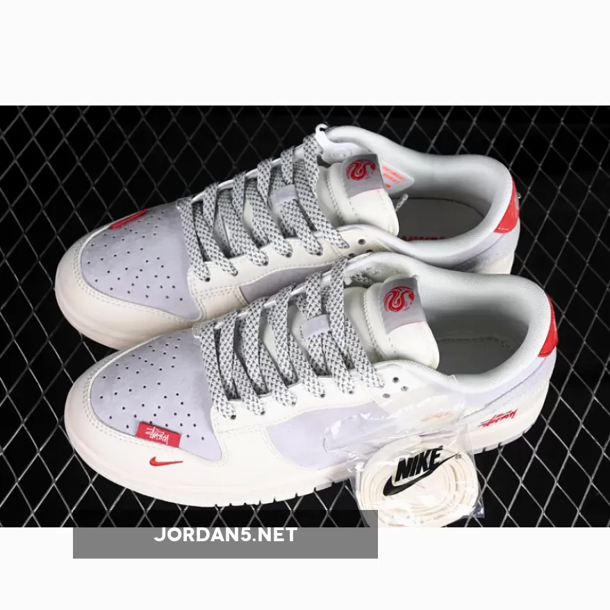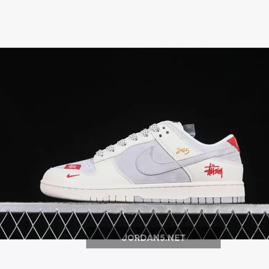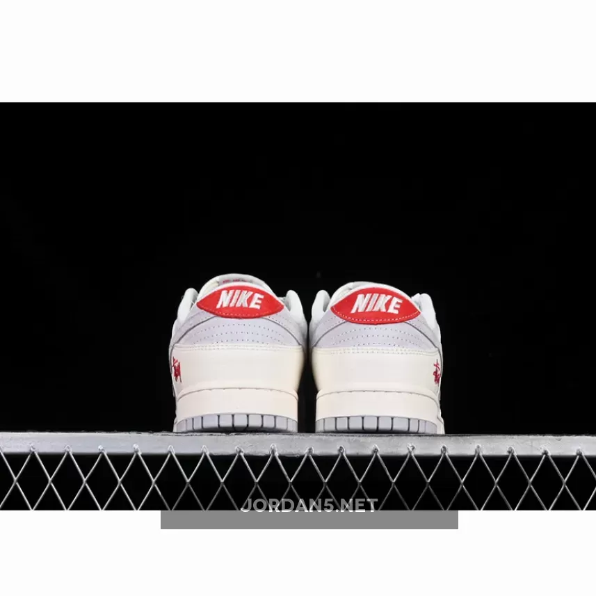 Upgrade your wardrobe with SB DUNK LOW WHITE/GREY/RED from JORDAN5.NET.