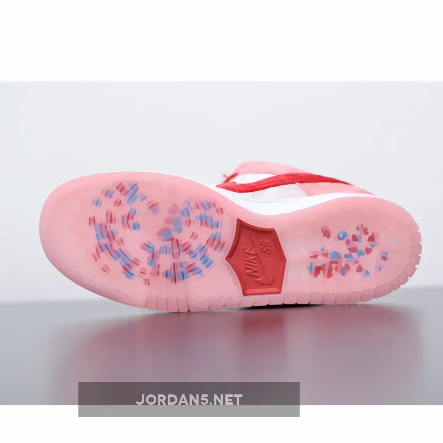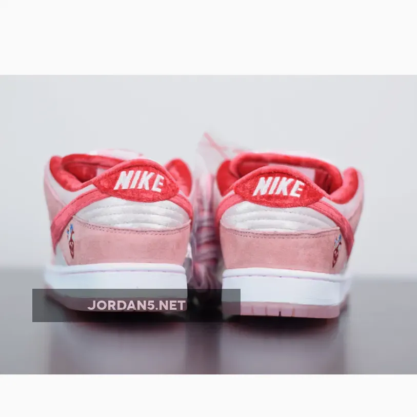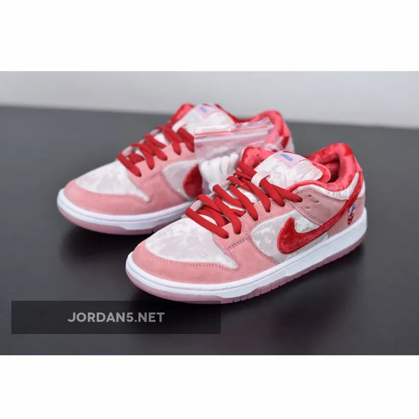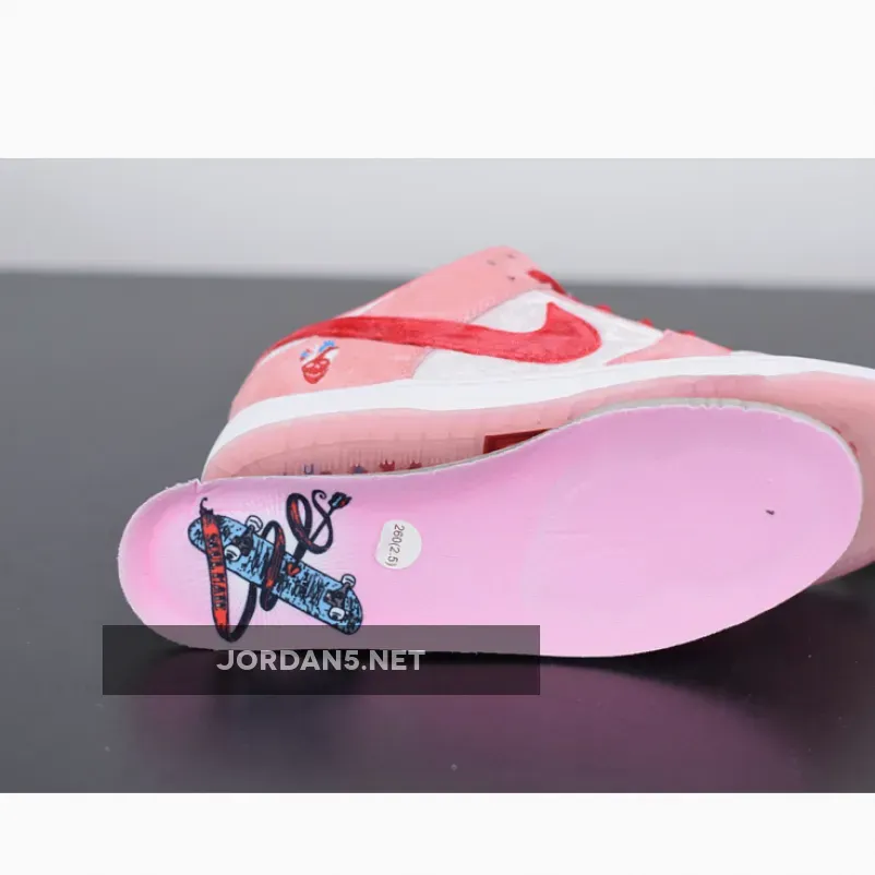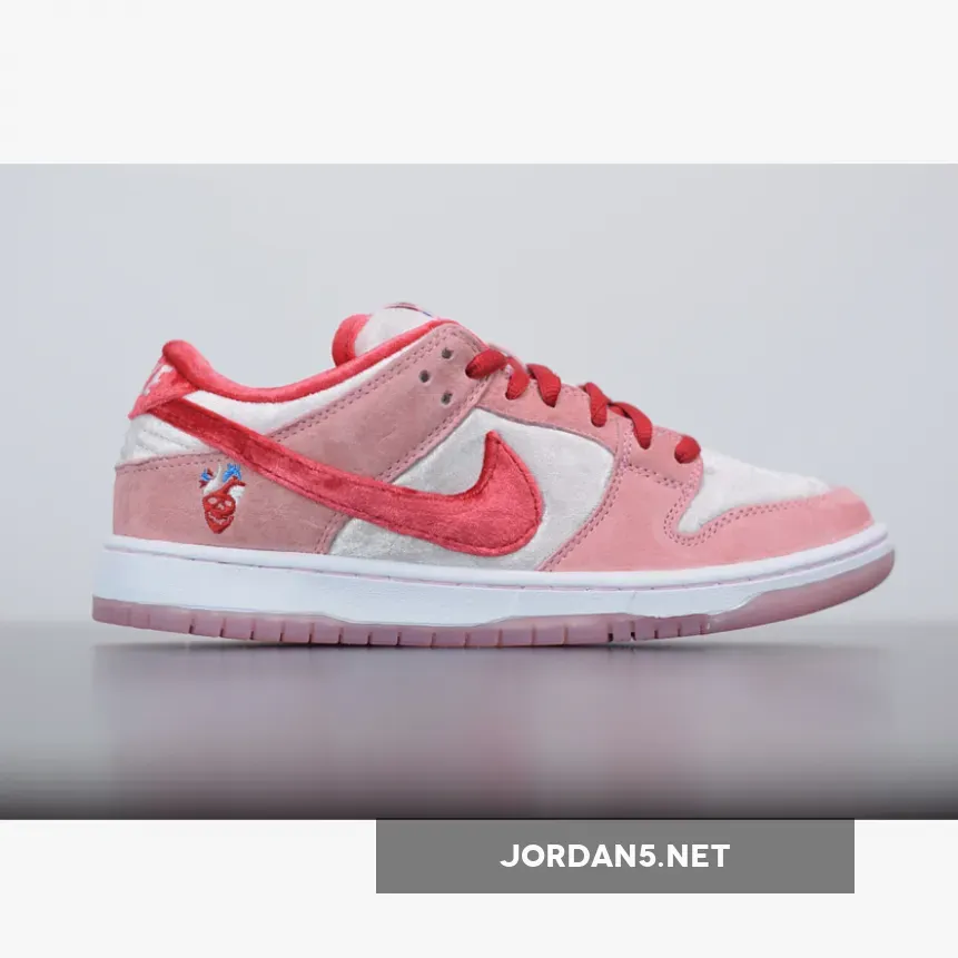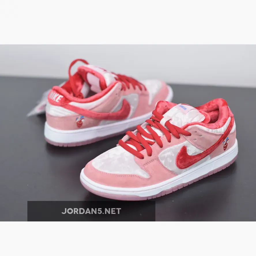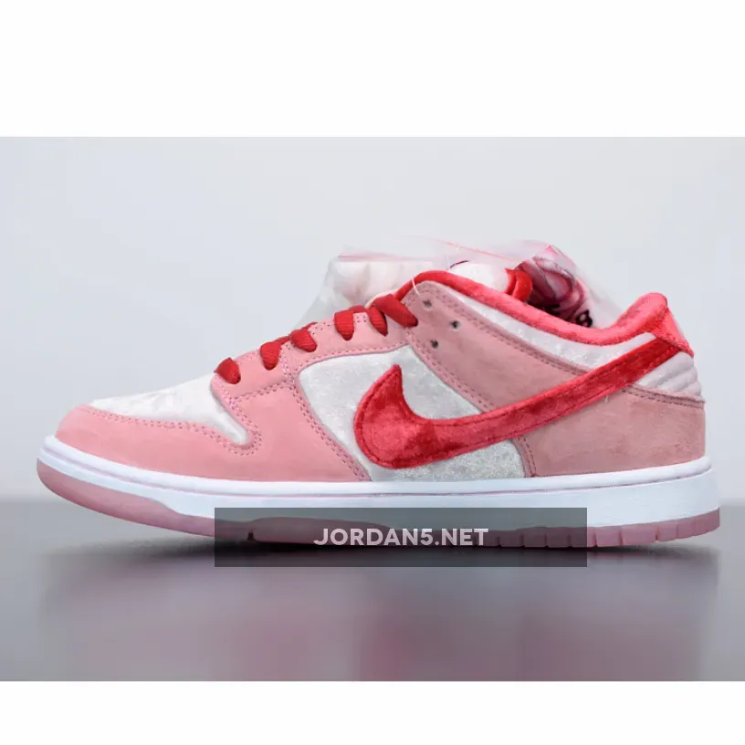 The Nike SB Dunk Low StrangeLove Skateboards (Regular Box) is a stylish and luxurious sneaker that features a pink velvet upper with suede overlays and a red velvet Swoosh. The Strangelove branding on the tongue, insole, and translucent outsole completes the design of the sneaker. The sneaker was made in Italy with the finest materials and craftsmanship. Get ready to turn heads with these sneakers.