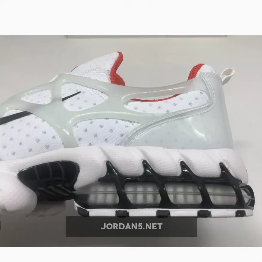 In addition, the midsole underfoot is also a crisp white shade to match the whole sneaker’s theme. It’s bulky texture, and the caged heel encasing the cushion tech is precisely our favourite feature on this striking silo. The extra height at the heels offers a smooth response and super speed!