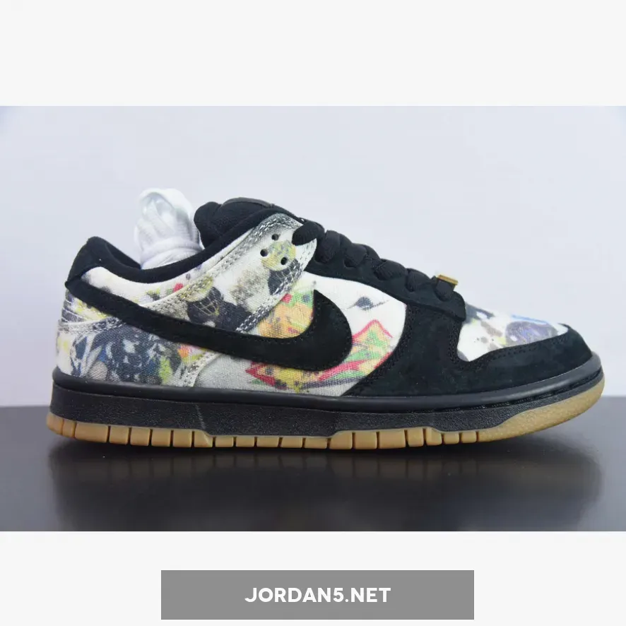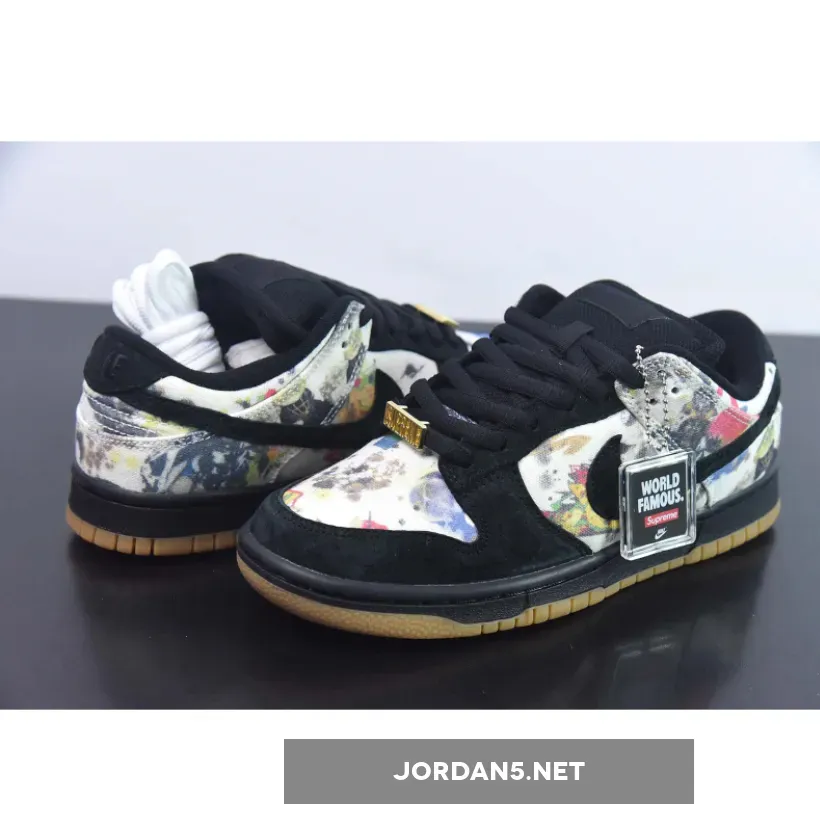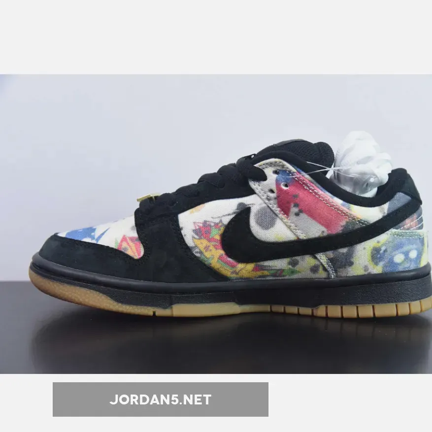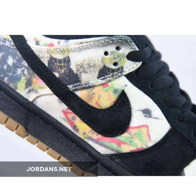 This offering of the Supreme x Nike SB Dunk Low upper is coated in a black upper crafted from suede and canvas materials. Highlighting the sneaker is Rammellzee’s artwork on the toe box, quarter panel, collar, and heel overlay. Other details includes Black suede overlays on the forefoot, eyestay, and Swooshe. Like past collabs, the shoe features a gold “SUPREME” lace dubrae that includes a co-branded hang tag. A Black midsole atop a Gum rubber outsole completes the design.