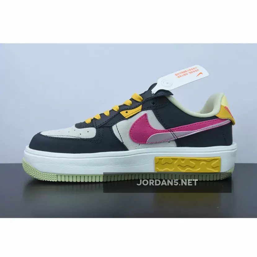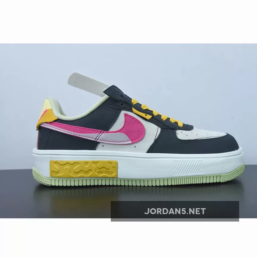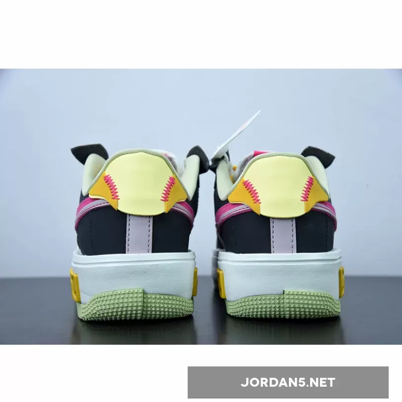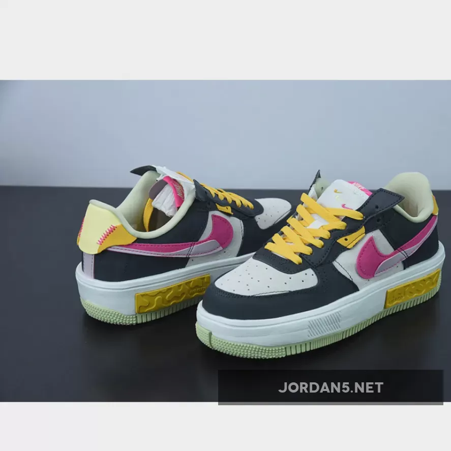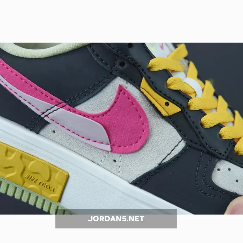 The Nike Air Force 1 Fontanka dresses up in playful colours and a deconstructed look with the new Nike Air Force 1 Fontanka Pink Prime. This AF1 features an “Off-Noir”, “Summit White” and “Pink Prime” colourway. The base of the upper is Summit White suede showing on the toe box and the quarter. The overlays, also in suede, on the toe cap, mudguard, the first layer of the stacked eyestay panel and the foxing are in “Off Noir”. The striking stacked signature profile Swooshes on both the medial and lateral sides of the shoe feature“Pink Prime” with a flannel-looking finish layered over by a lavender-coloured patent patch. Pops of golden yellow and light yellow appear on the eyestay panel, the laces and the unbranded heel tab. The stacked tongue tab shows off three mini Swooshes in golden yellow, Summit White and Pink Prime. A textured Nike React “cassette” in golden yellow adorns the pure white midsole while a soft green rubber outsole completes the look of the shoe. Snag the Nike Air Force 1 Fontanka Pink Prime on Our Store Supplier app and always be one of the first to catch the most recent sneaker drops from Nike.