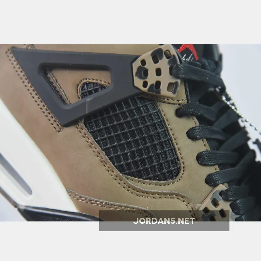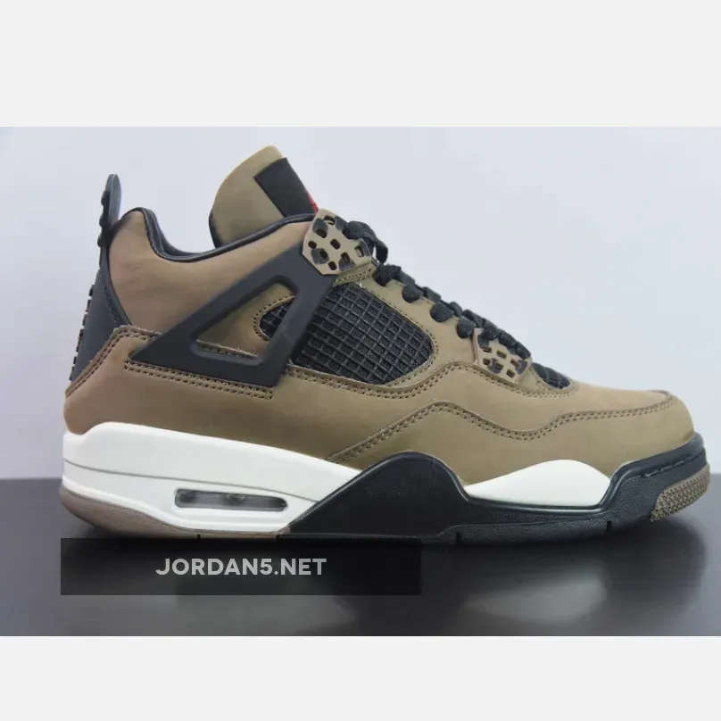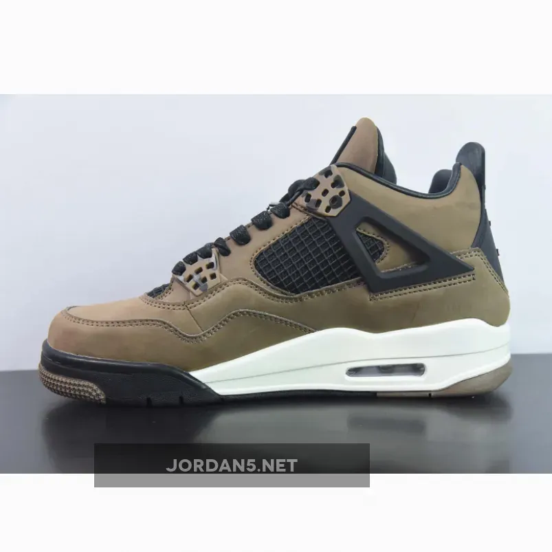This version of the Air Jordan 4 features an Olive nubuck upper with Black detailing throughout.