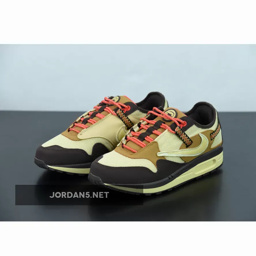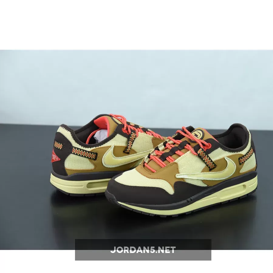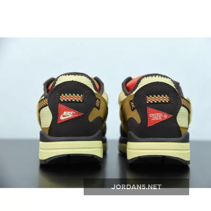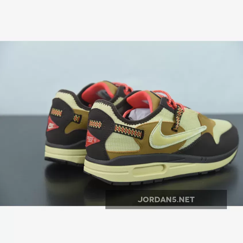 This offering of Travis Scott’s Nike Air Max 1 features a Light Green mesh upper paired with Brown overlays along with the Travis’ signature reverse Swoosh on the lateral side. Other details include a new “Cactus Jack” logo appearing on the tongues and heels.