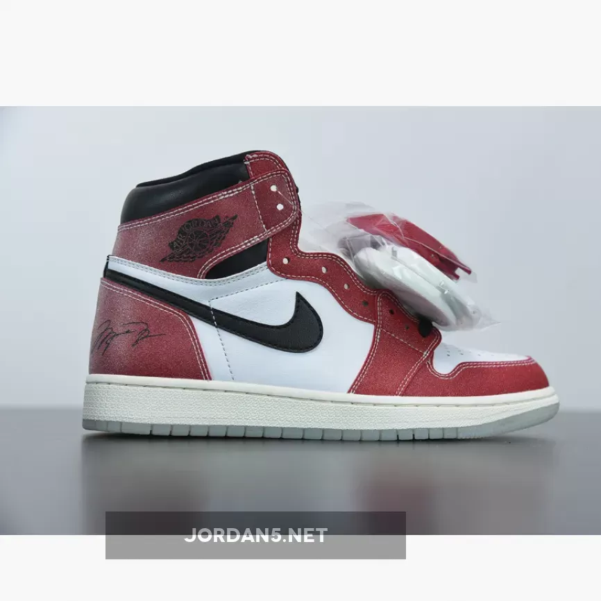 The Trophy Room x Jordan 1 Retro High OG Chicago is the Jordan brand’s latest addition to their line-up of basketball sneakers set for a release at some point early next year. A detailed look at the pair shows a legendary colorway that is slightly modified but still maintains traditional features, meaning that this will be one hell of a release that you don’t want to miss out on.In collaboration with Marcus Jordan’s Trophy Room, this forthcoming AJ1 holds a value that is highly sentimental to a lot of Jordan heads as the Trophy Room is a boutique owned by the son of Michael Jordan and can only be found inside his mansion in Chicago. But above all, this pair pays respects to NBA’s legendary “freeze-out” which took place during the 1985 All-Star Game.Arriving in a colour palette of the OG Chicago colourway that we all know and love, the Trophy Room Air Jordan 1 works on a white leather upper accentuated with glittery red overlays for a luxurious sneaker aesthetic. Michael Jordan’s autograph makes an appearance on the lateral heel while the Wings logo can be seen embossed on the ankle collar for a signature touch.The Trophy Room x Air Jordan 1 is rumoured to be released on the 10th of February and is limited to 12,000 pairs only.