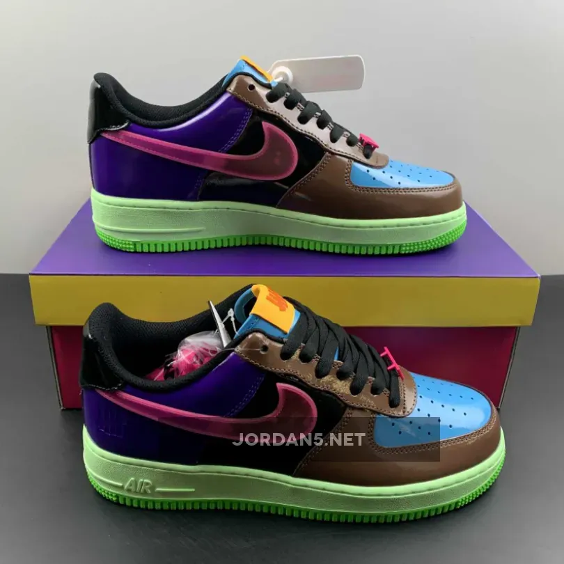 Each Undefeated x Nike Air Force 1 Low comes dressed in a mix of Multi-Colors constructed in full patent leather. Notable details includes UNDFTD lace locks, Undefeated’s five strikes logo desbossed on the lateral heel, with additional tongue and insole branding. A White/Sail midsole atop an icy translucent and/or Gum rubber outsole completes the design.