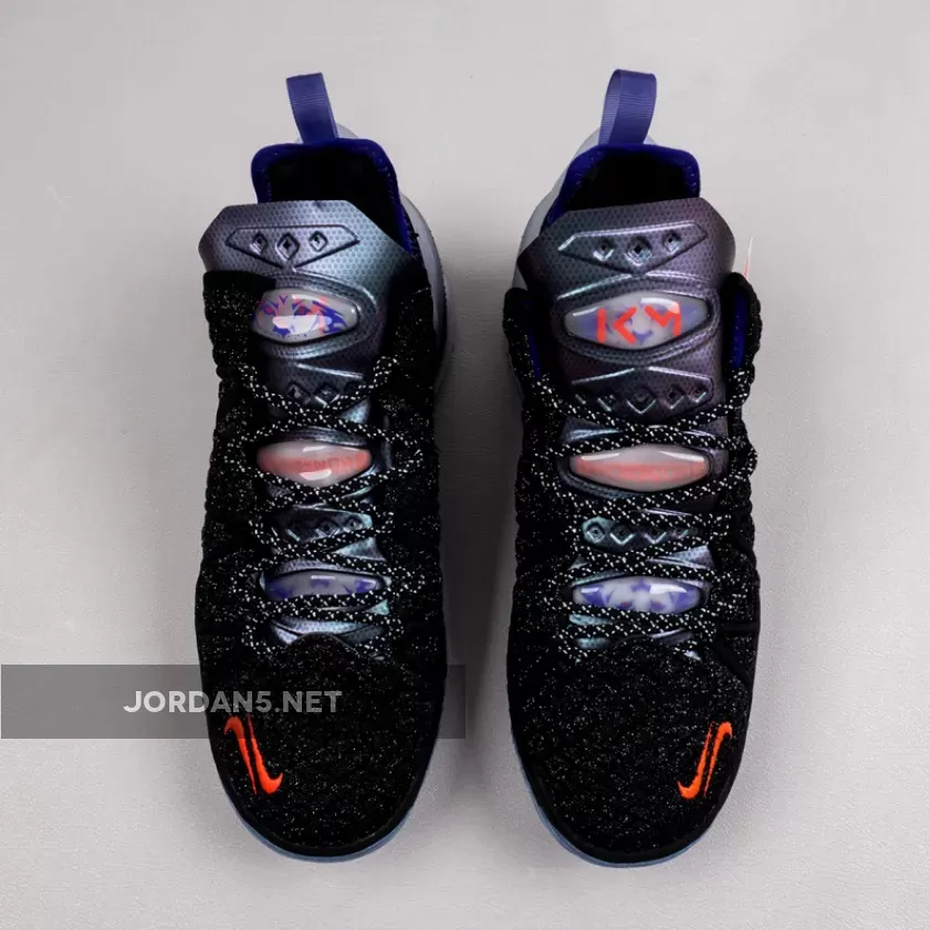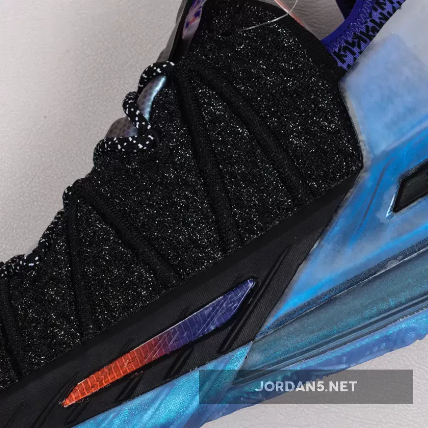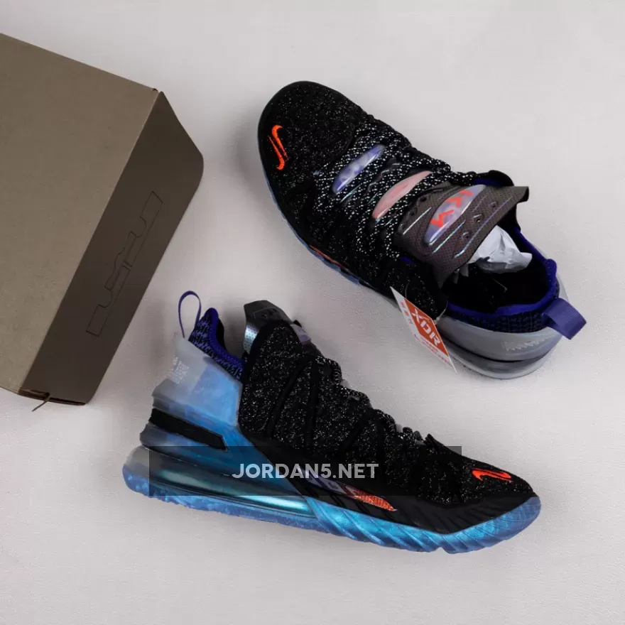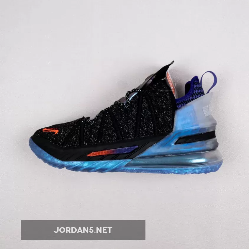 The Nike LeBron 18 Black Blue Orange offers a sleek, comfy fit with its knit textiles & stylish color combo. The dual Swooshes & Air bubble technology make this a must-have for any serious baller. #NikeLeBron #BasketballSneakers #GameReady
