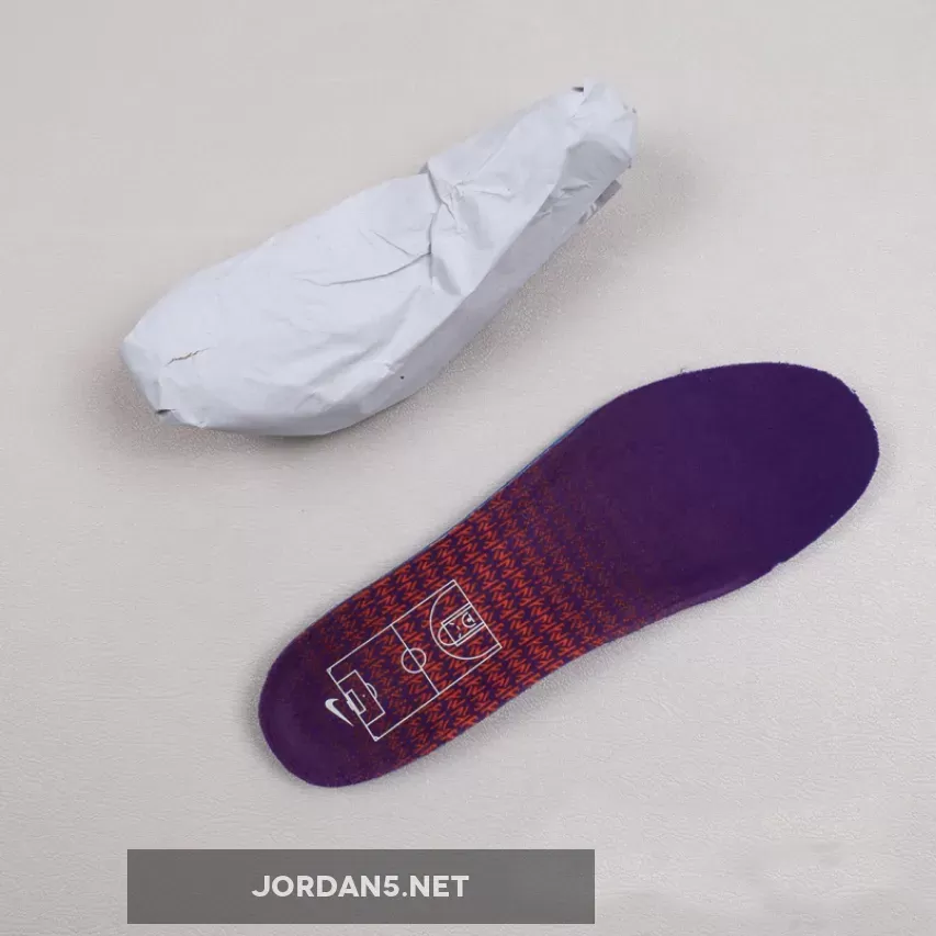 The Kylian Mbappé x Nike LeBron 18 NRG ‘The Chosen 2’ showcase a distinctive design that unites two different sports icons who embody the spirit of their respective games and communities. The black Knitposite 2.0 upper is accented with bright right embroidered Swooshes on the lateral toe and an iridescent metallic tongue, the latter featuring dual LeBron and Kylian branding. Subtle purple and blue tones distinguish the molded heel clip and rubber outsole, between which sits a large-volume Max Air unit enhanced with Zoom Air cushioning.