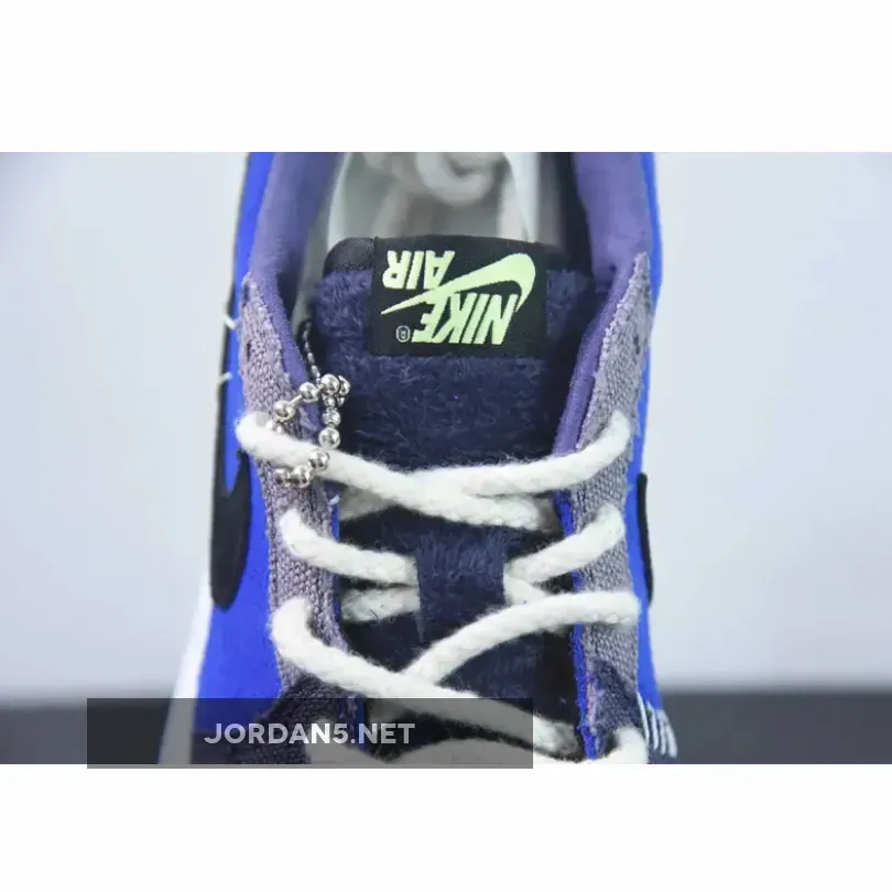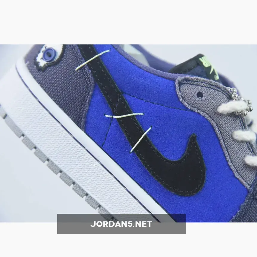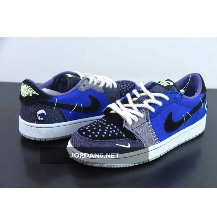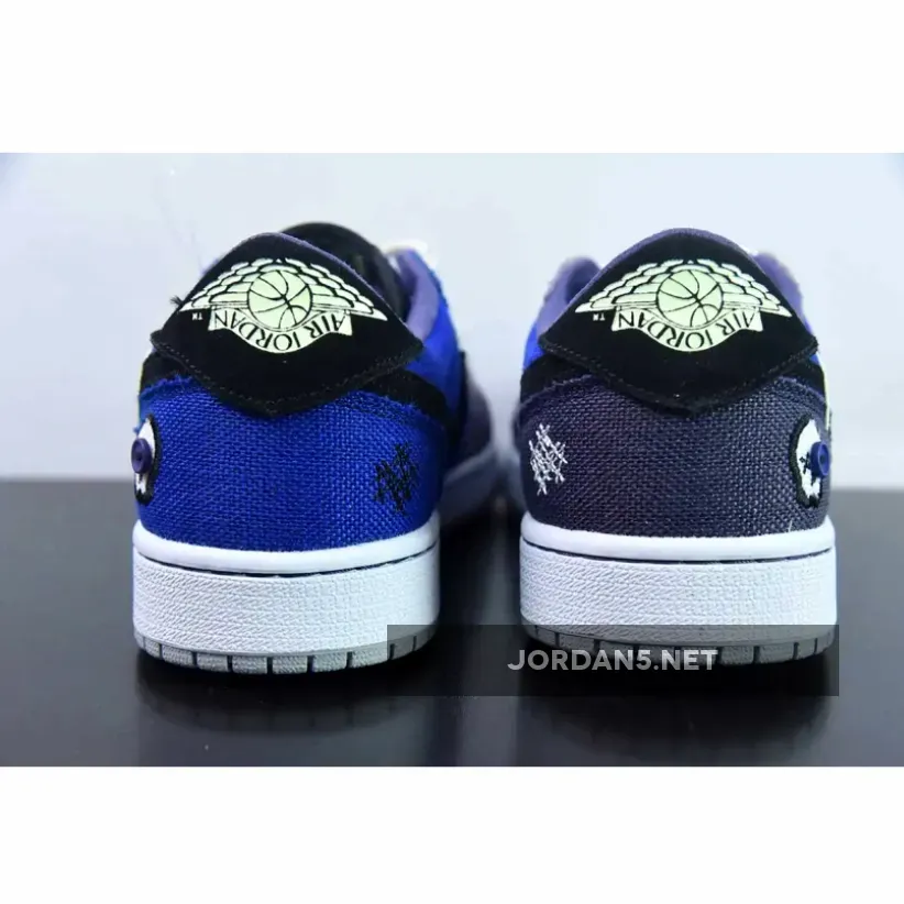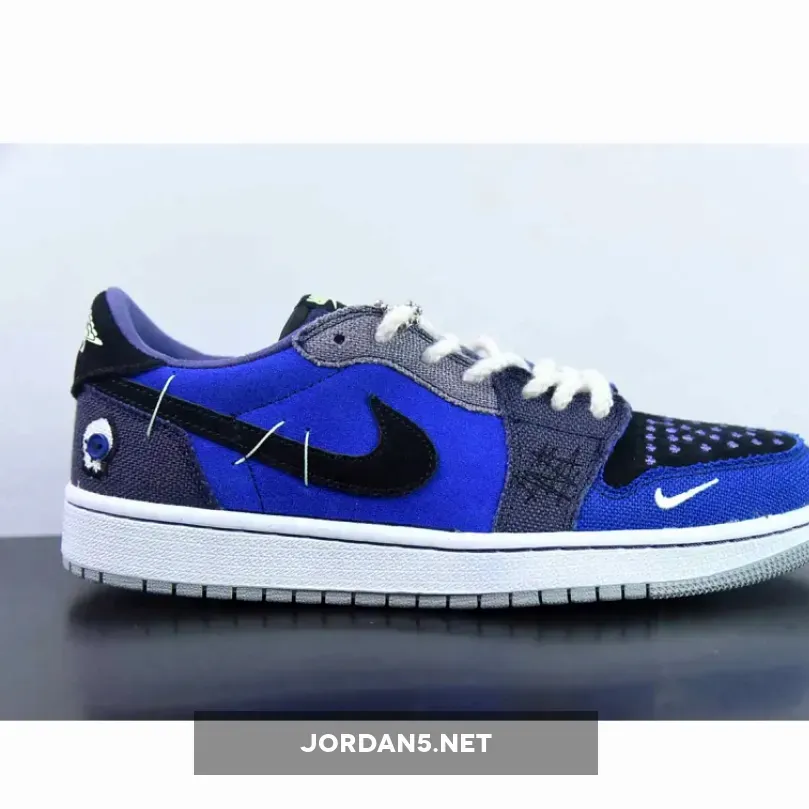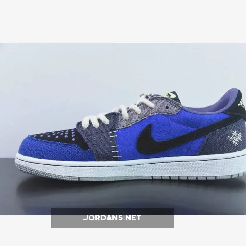 The Zion Williamson x Air Jordan 1 Low OG “Voodoo Alternate” is a shoe that features a mix of blue tones, suede, and burlap-like materials. The shoe is inspired by voodoo dolls and Williamson’s New Orleans background. It has an aesthetic that blends traditional voodoo imagery with a modern style.